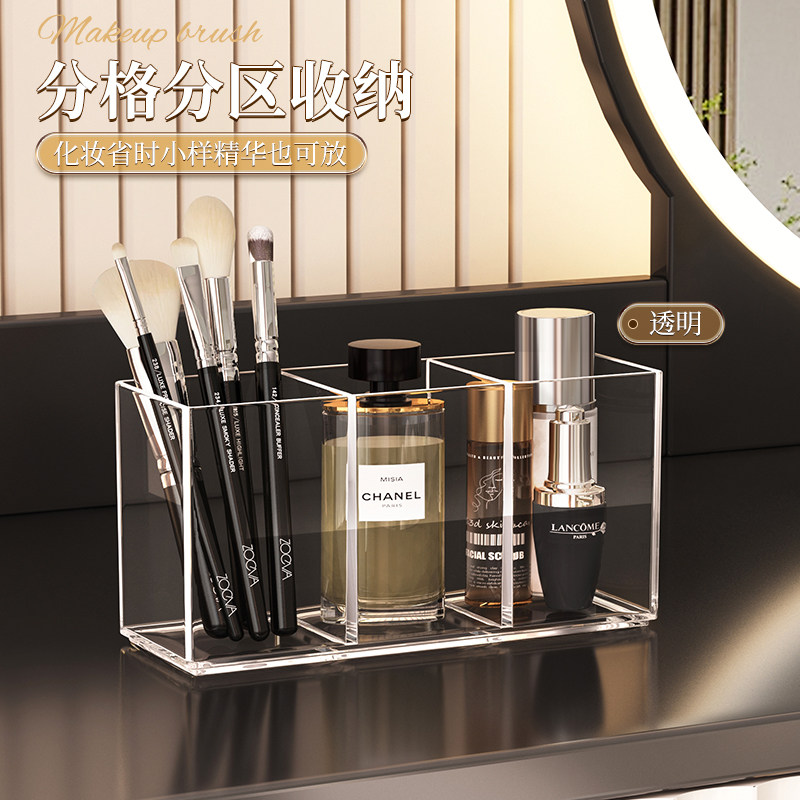 化妆刷收纳筒桌面透明亚克力笔桶镜柜彩妆眉笔口红置物化妆品整理