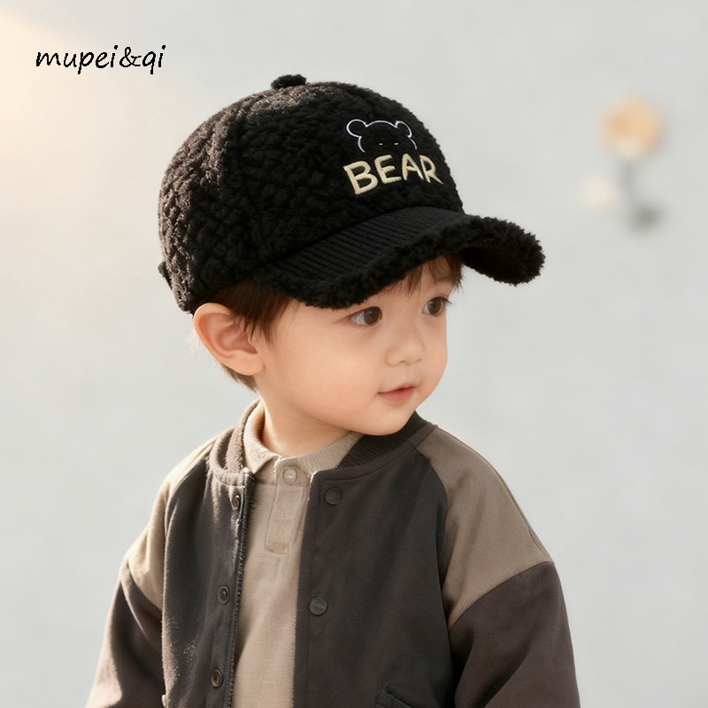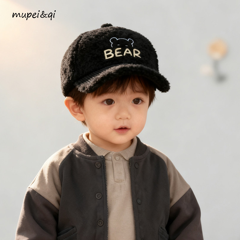儿童羊羔毛棒球帽男童女童秋冬季保暖鸭舌帽韩版字母熊潮宝宝帽子