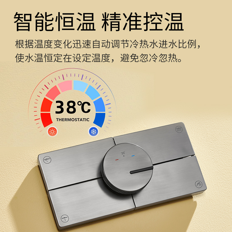 枪灰色恒温暗装花洒套装浴室预埋入墙增压LED智能遥控淋浴器白色