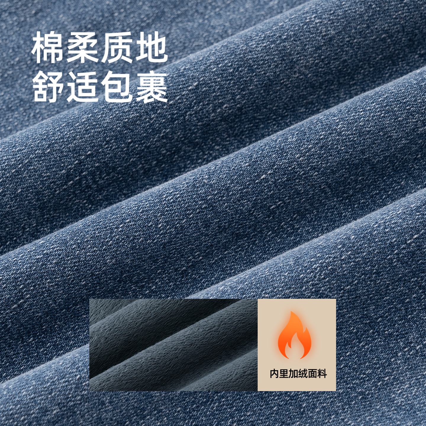 one more加绒牛仔裤女2025新款秋冬保暖复古直筒裤加厚阔腿裤子X
