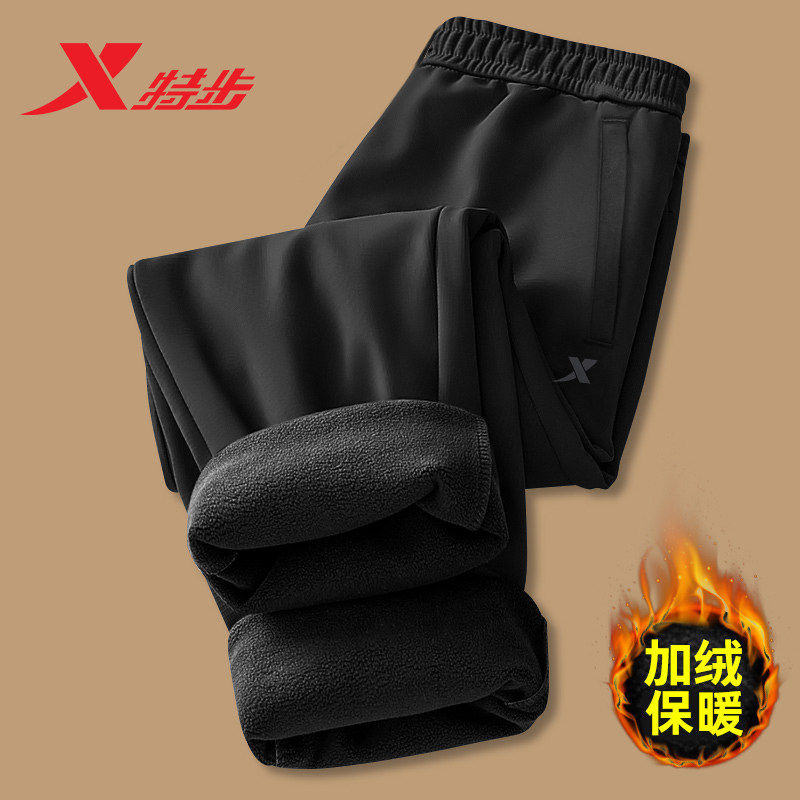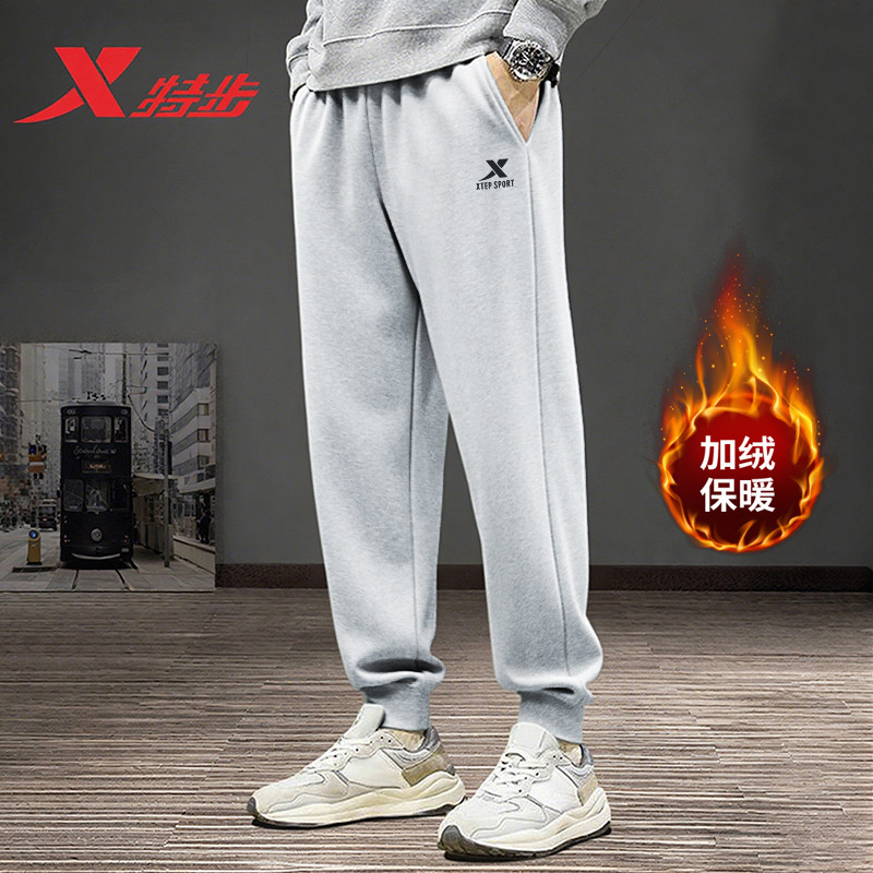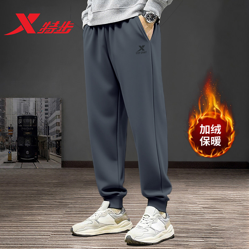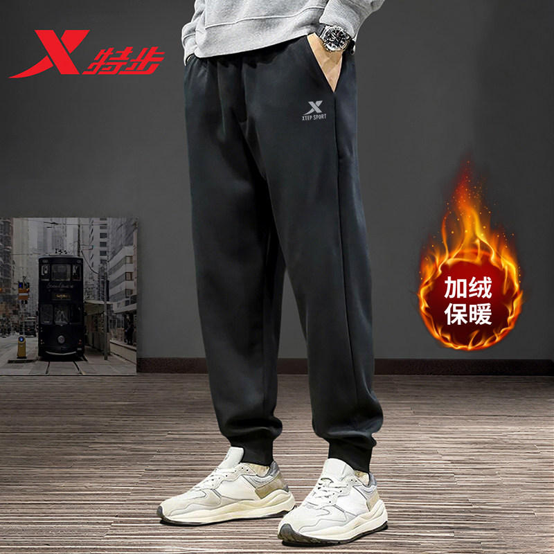 特步男裤加绒裤官方秋冬季新款时尚跑步男士运动裤保暖休闲束脚裤