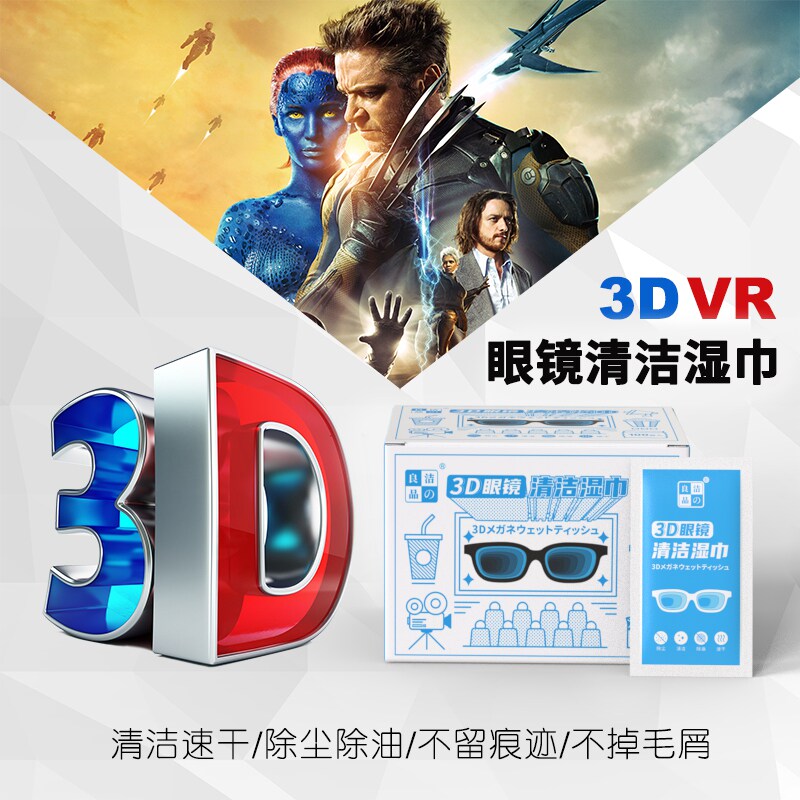 电影院3D眼镜VR清洁湿巾酒精镜头镜片擦拭纸去污速干无痕