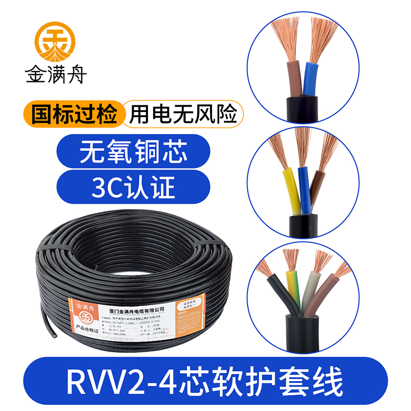 国标3C全铜电缆线RVV2芯3芯4芯电源线0.5/0.75/1.0/1.5/2.5平软线
