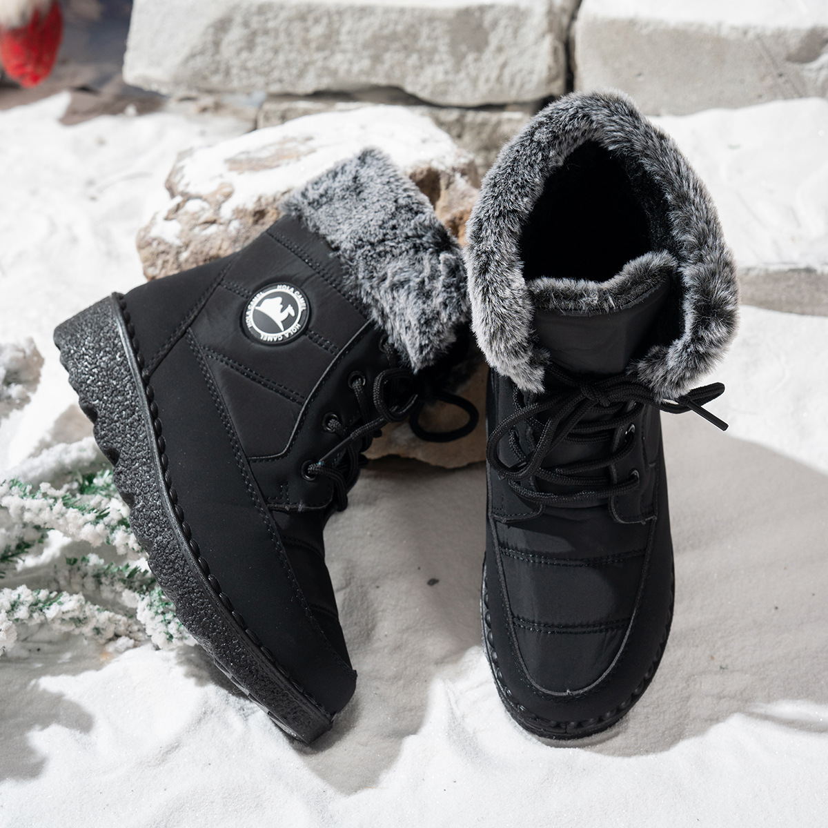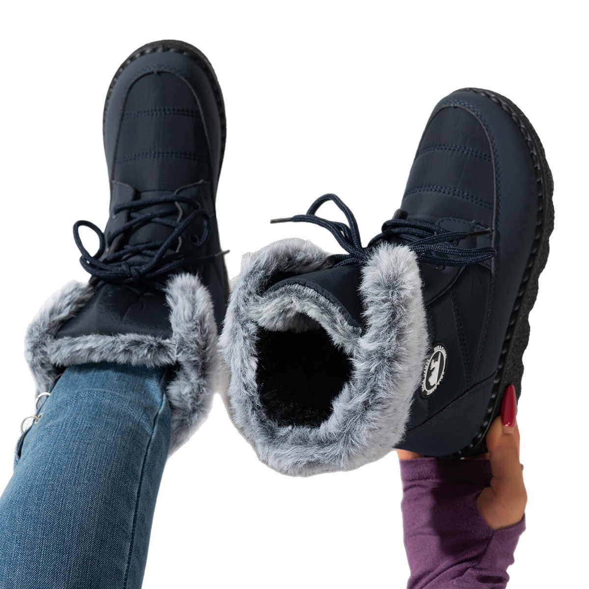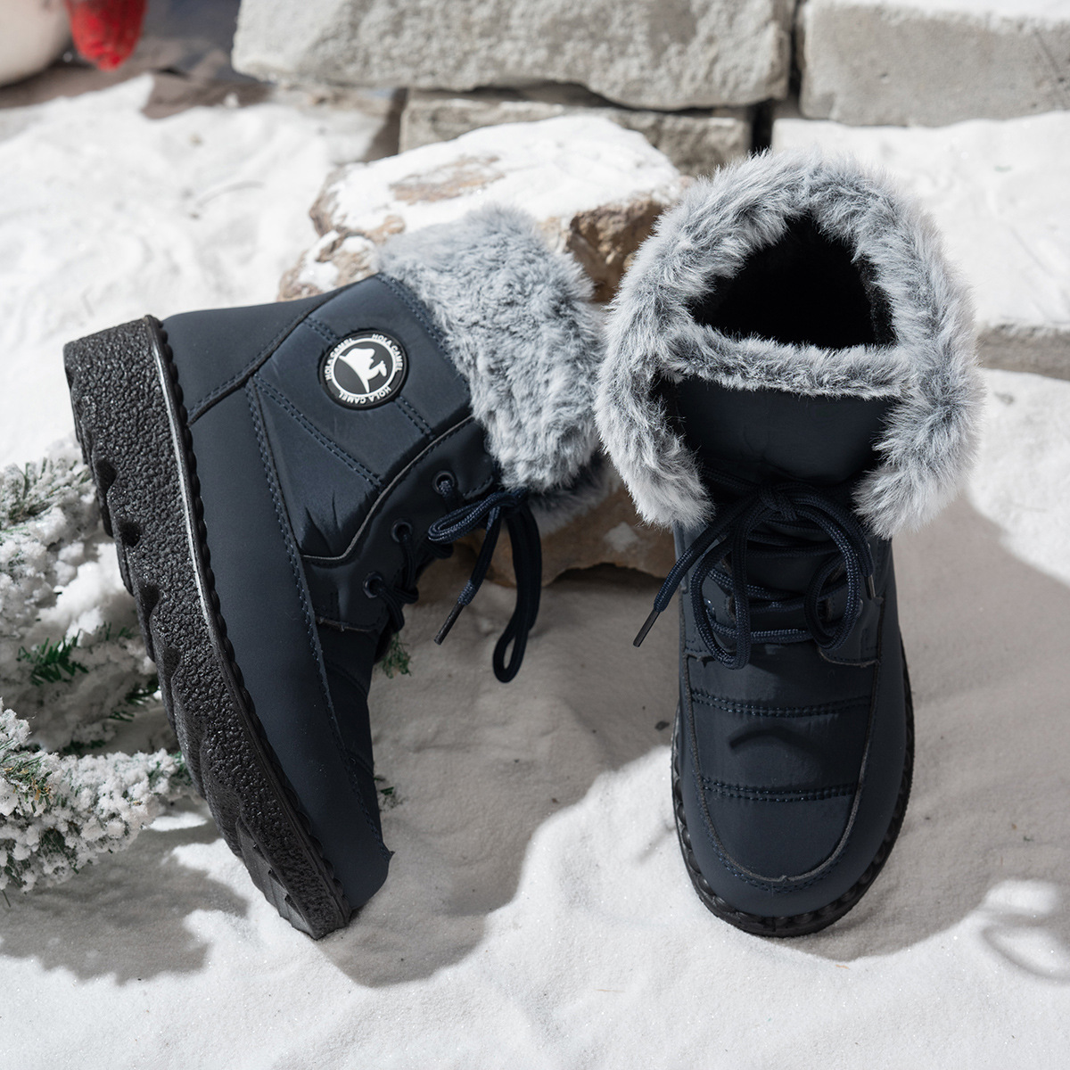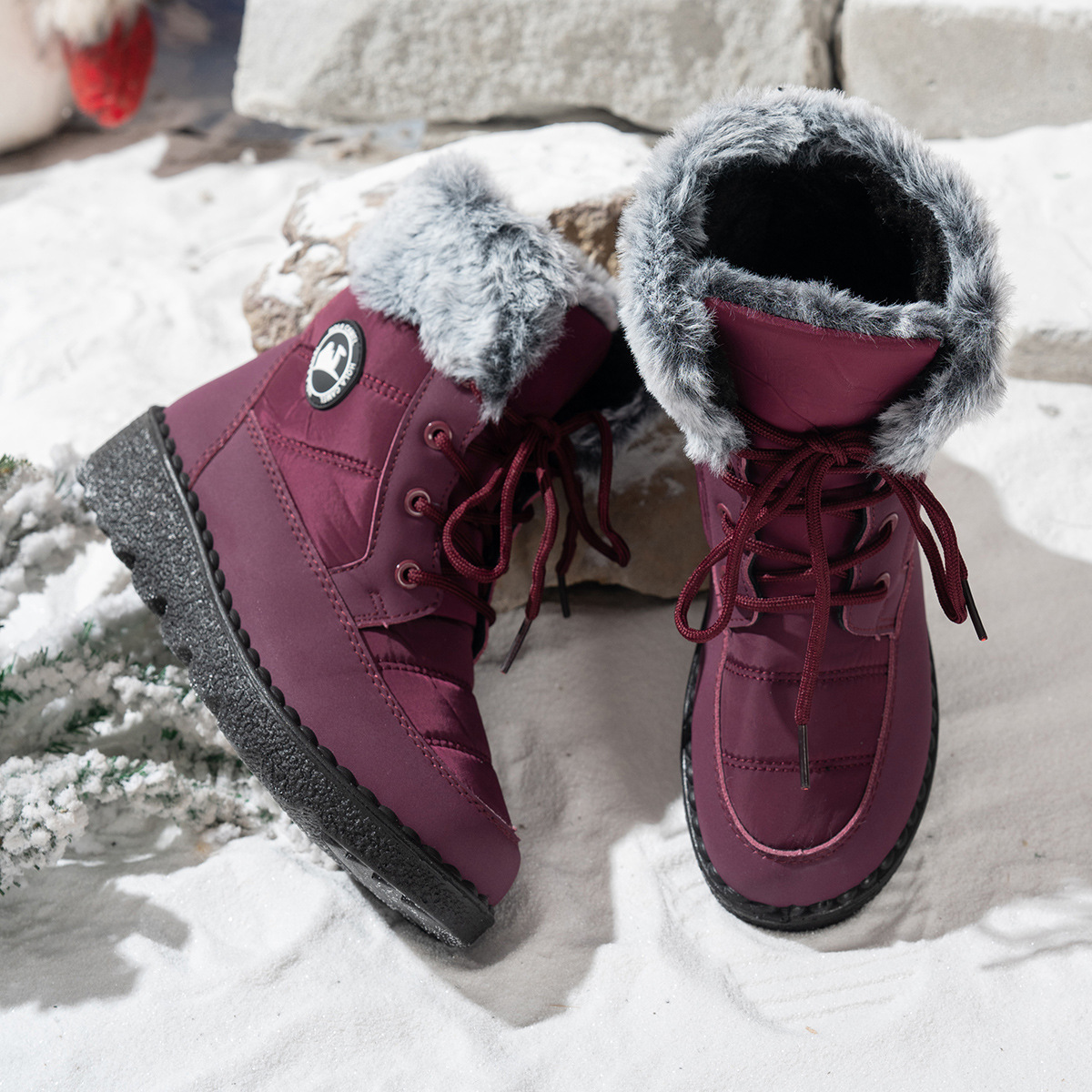 年轻女妈妈穿42大43码时尚棉靴短筒系带厚底加绒防寒保暖雪地靴子