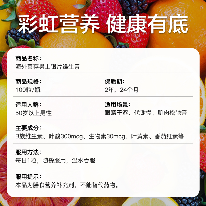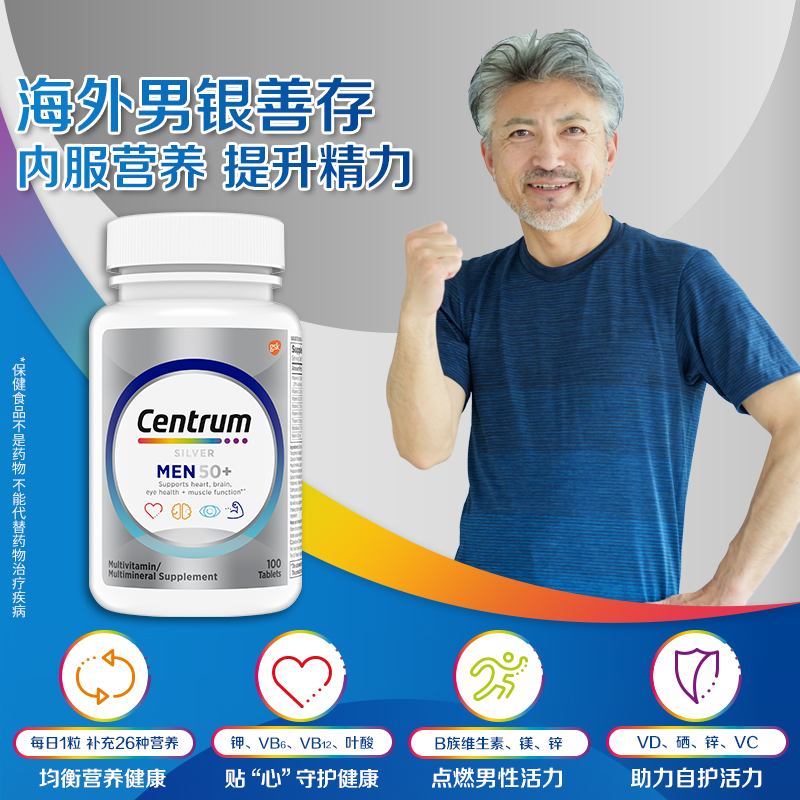 【自营】进口善存银片50岁+男士中老年复合维生素100粒