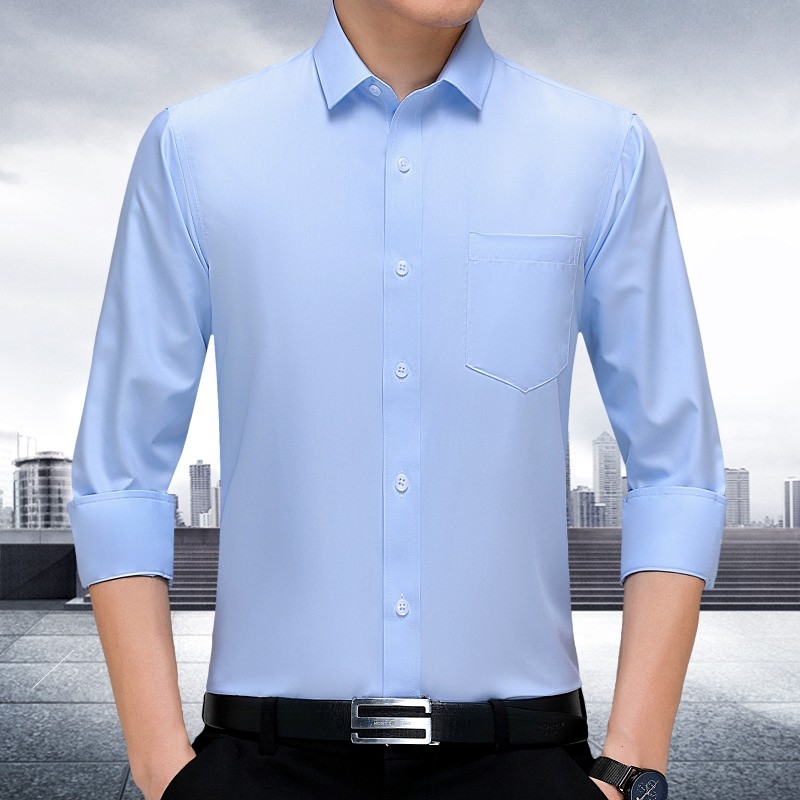 品牌鄂尔多斯市商务风春夏秋冬长袖衬衫男装免烫正装婚礼伴郎衬衣