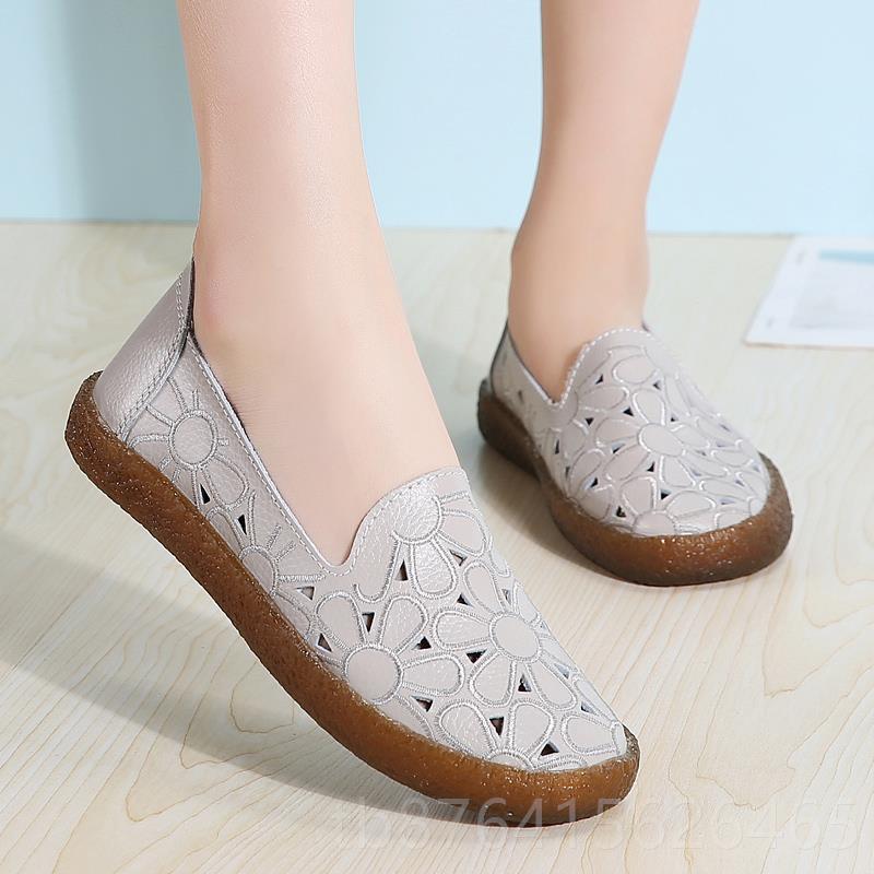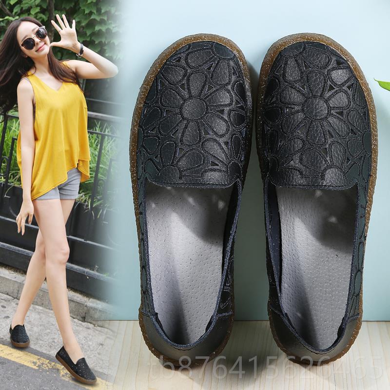 正品真皮豆鞋豆鞋春秋单鞋平底女鞋孕妇妈妈懒人鞋软底鞋女工作护