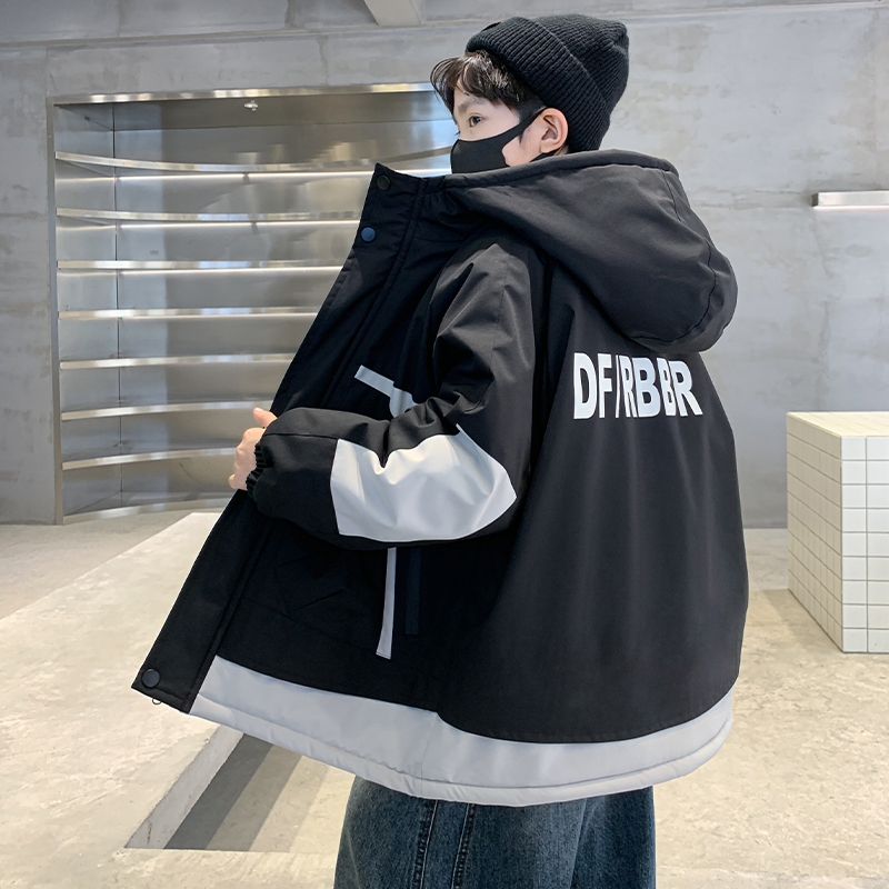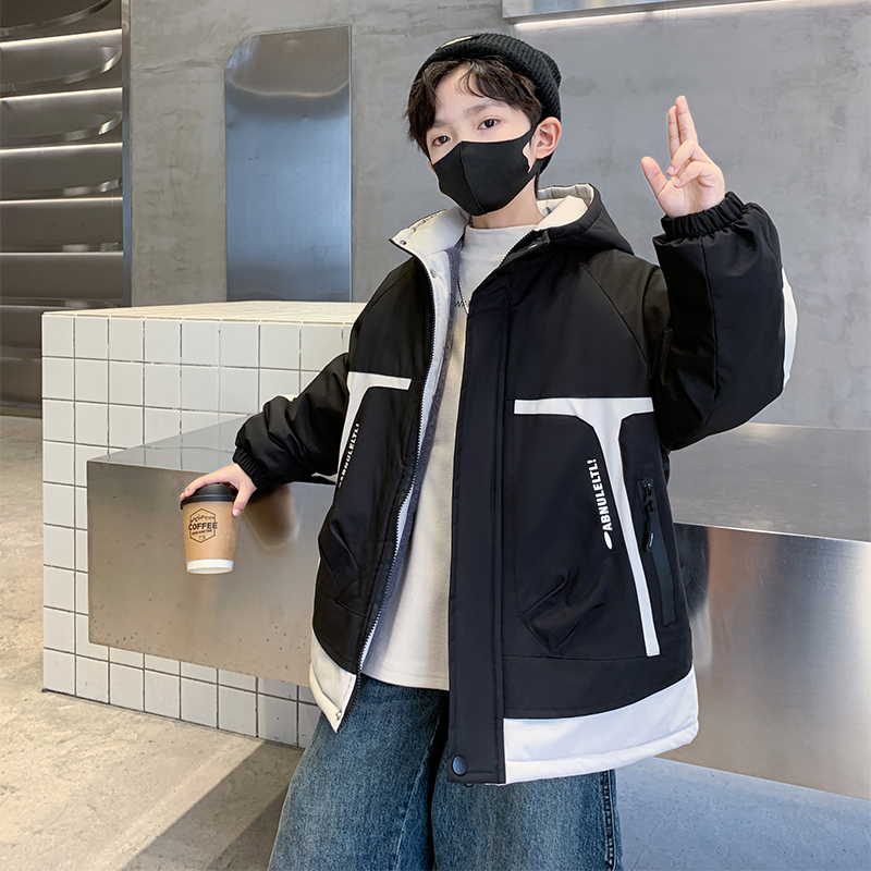 男童秋冬加厚连帽外套2025新款男孩冬装帅气派克服中大童加绒棉衣