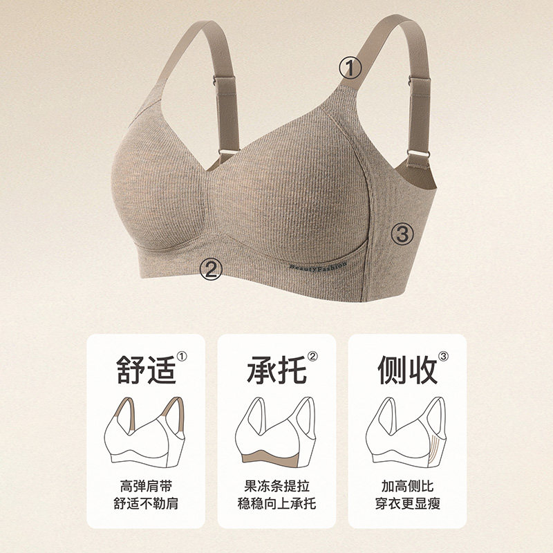 磨毛无痕内衣女士聚拢小胸显大收副乳防下垂上托无钢圈秋冬文胸罩