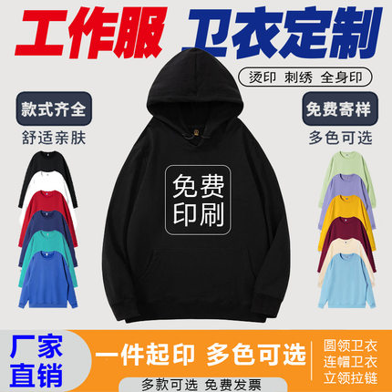 秋冬加绒连帽卫衣定制工作服印logo餐饮火锅店工衣订做厂家直销