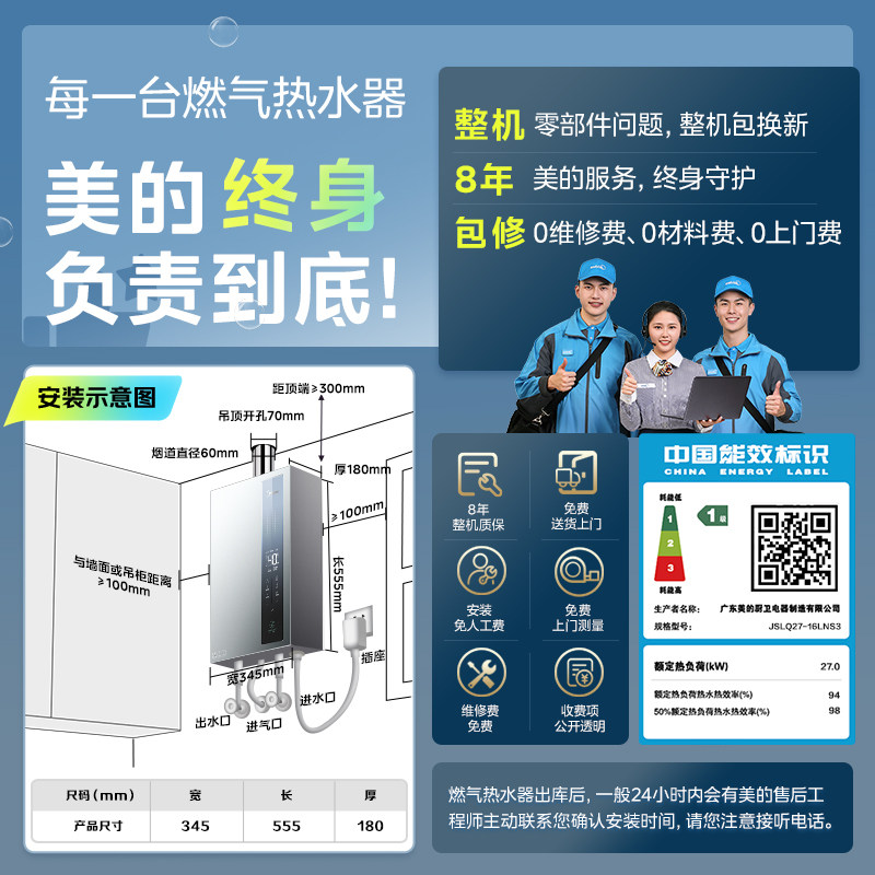 美的一级能效零冷水天然气热水器
