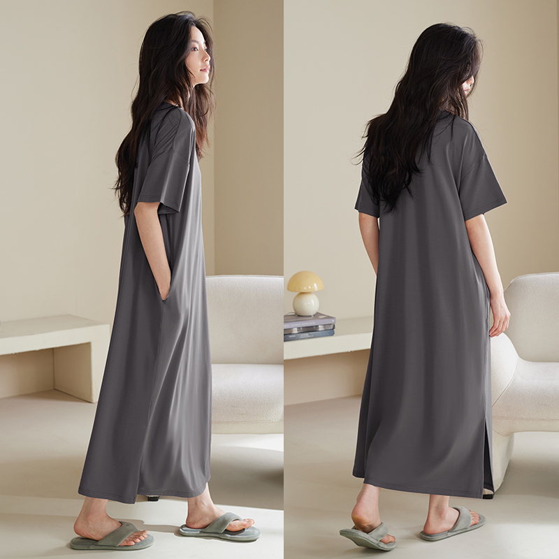 睡裙女夏季薄款莫代尔棉短袖长裙