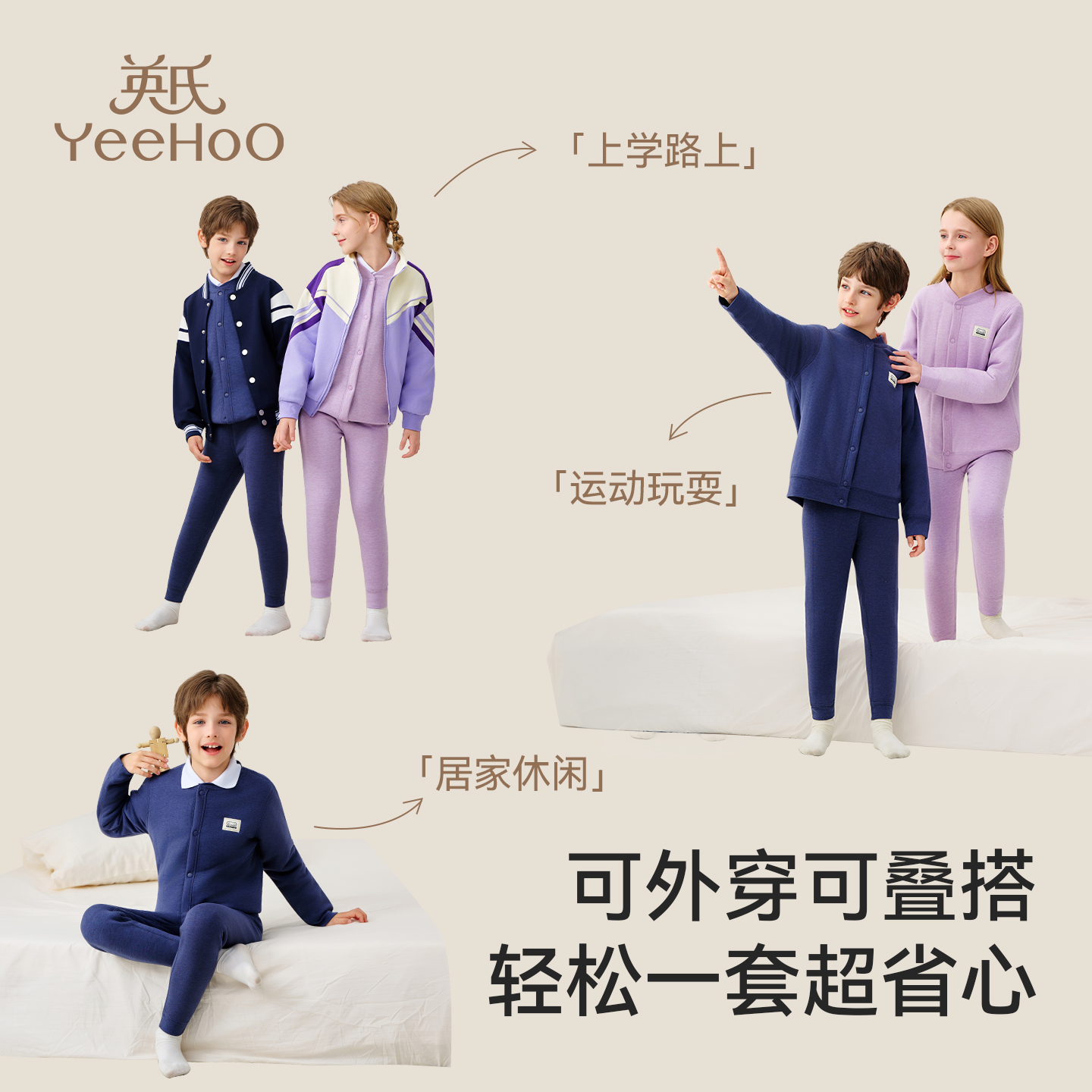 英氏儿童校服神器羊毛五层加厚男女中大童秋冬保暖内衣套装内外穿
