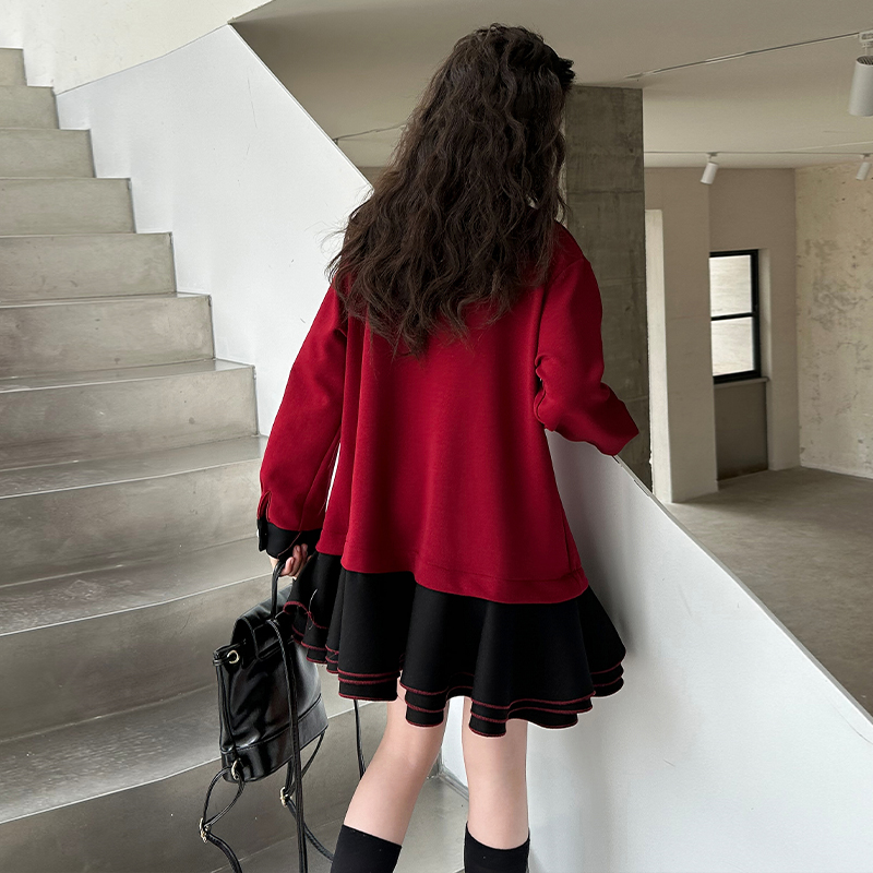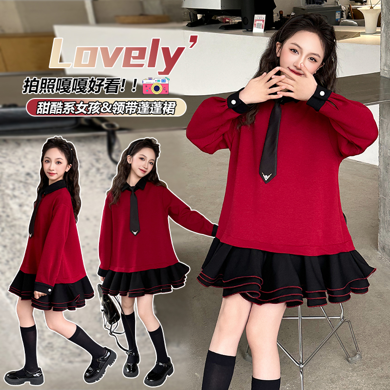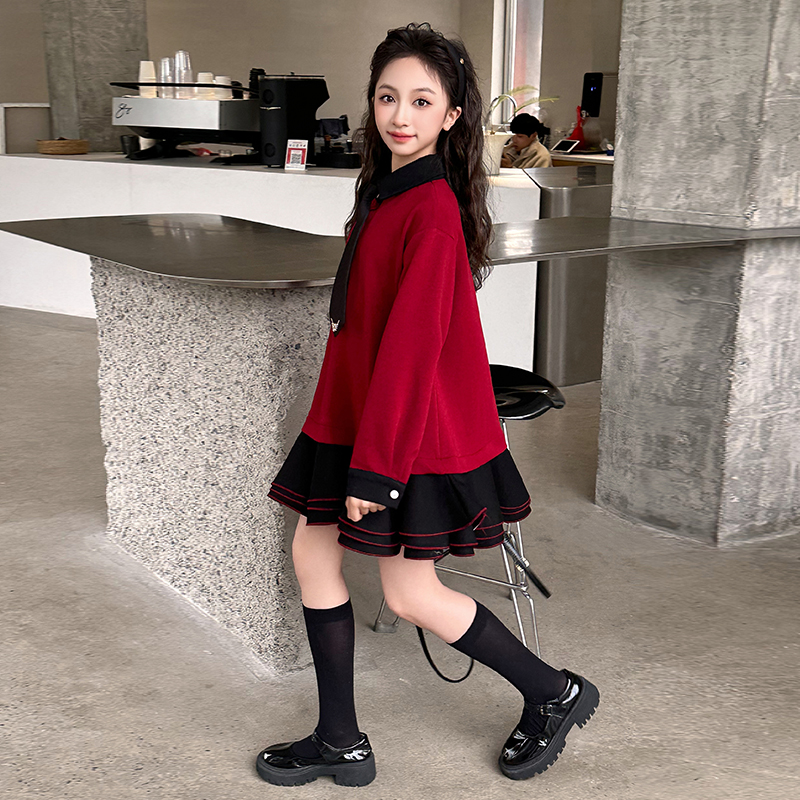 女童连衣裙秋冬款2025新款儿童学院风卫衣裙中大童过年洋气公主裙