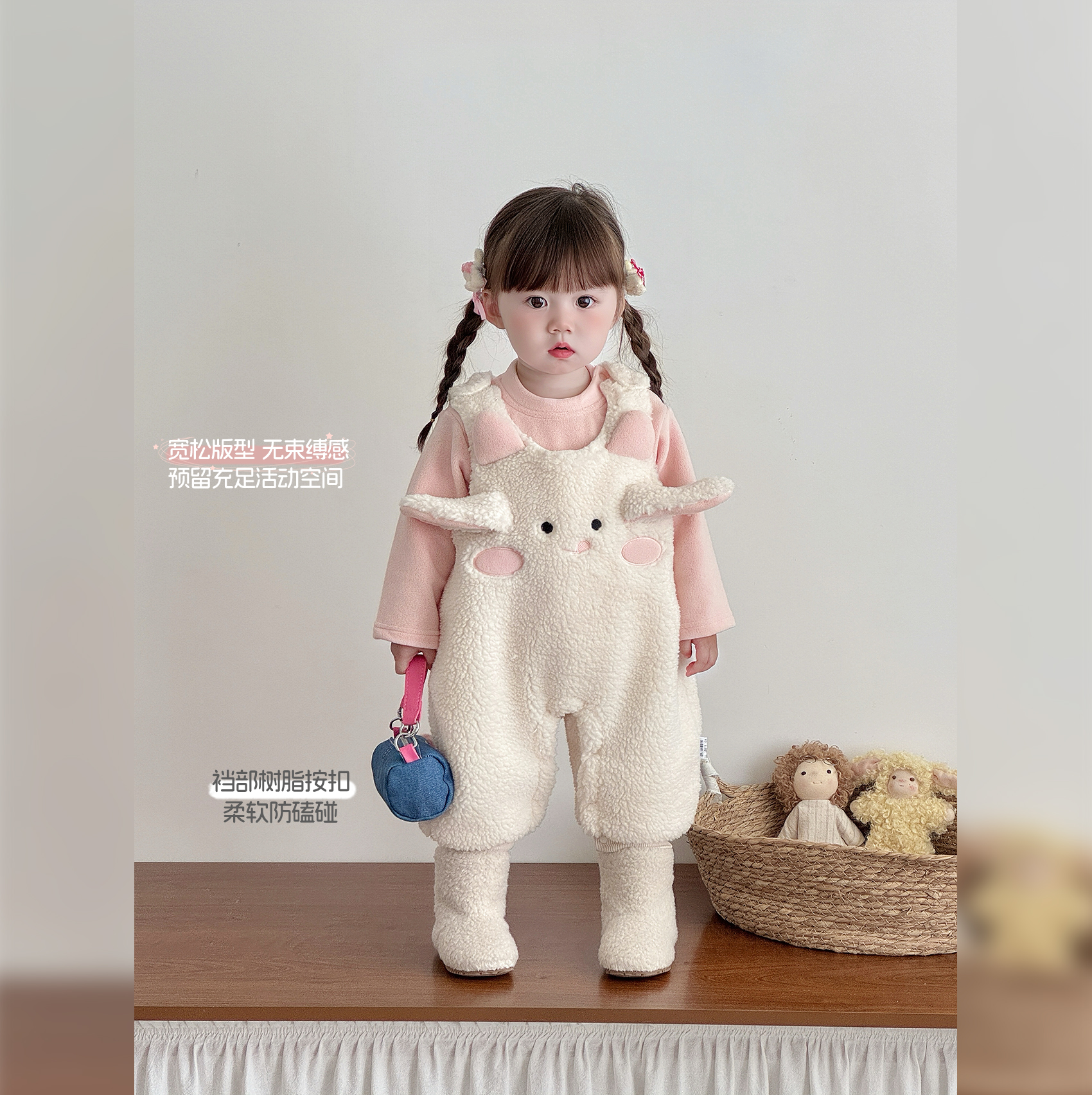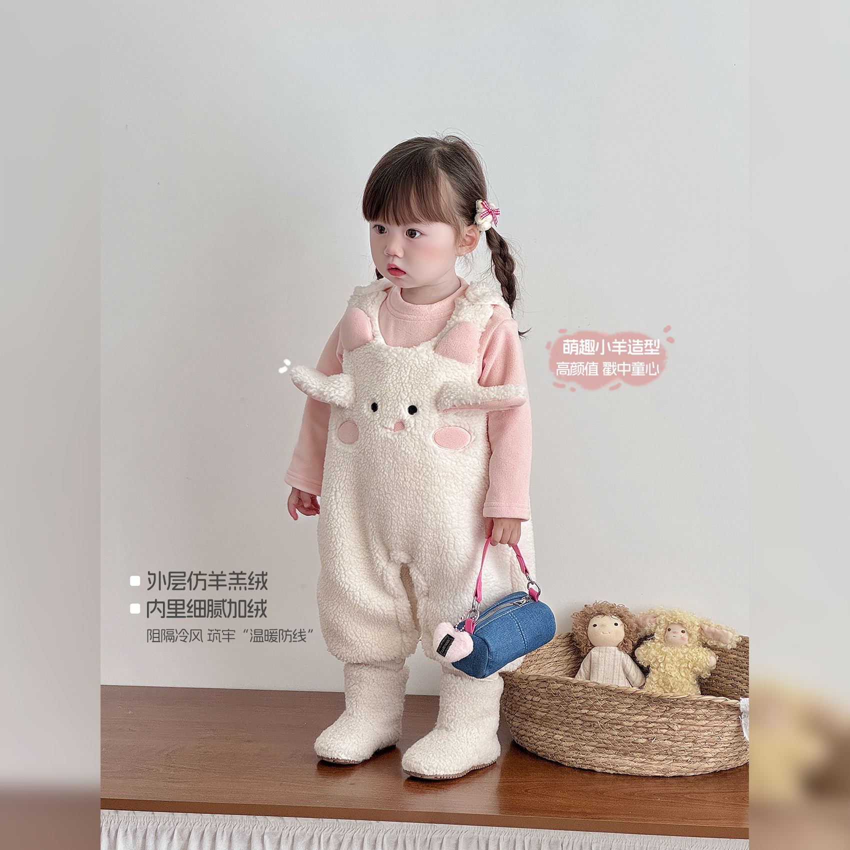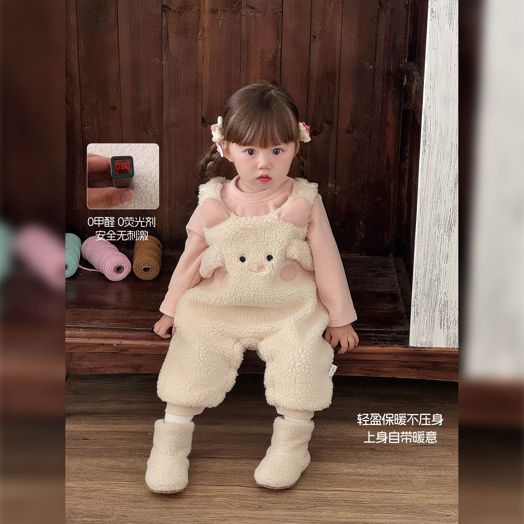 女宝宝冬季加绒套装超萌婴儿保暖卫衣女童加厚背带裤分体冬装衣服