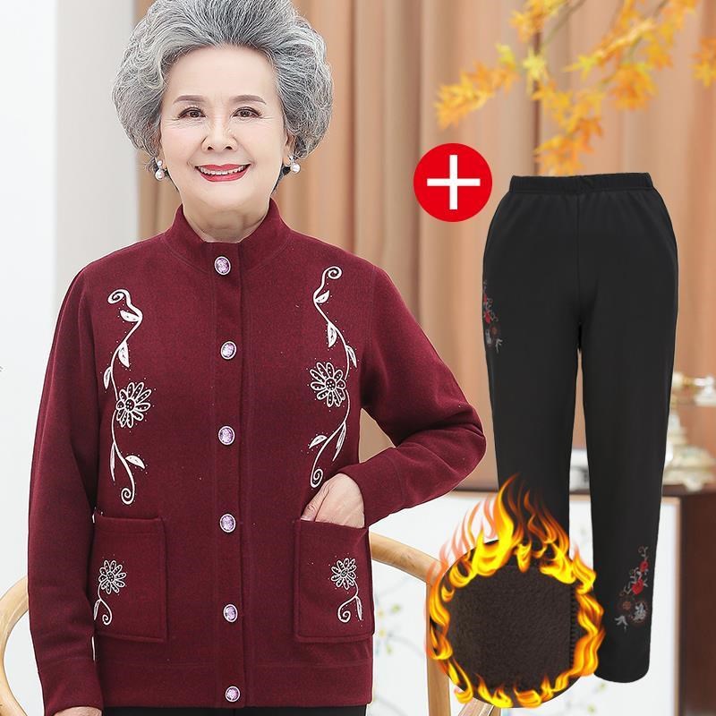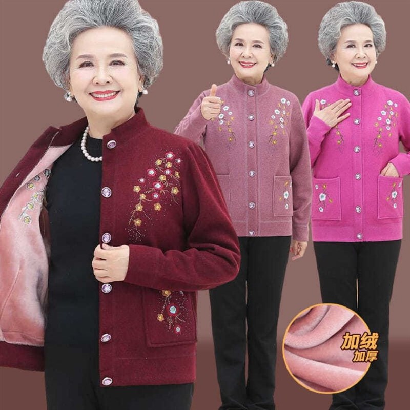 中老年女装冬装老年人妈妈毛衣开衫加绒加厚棉袄外W套保暖上衣奶