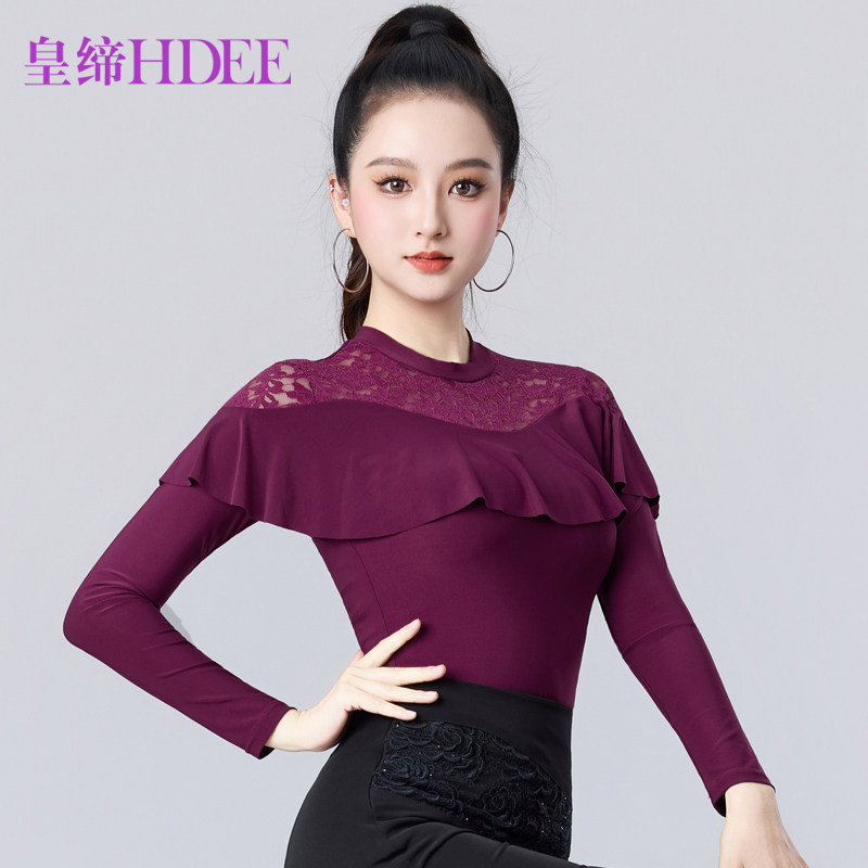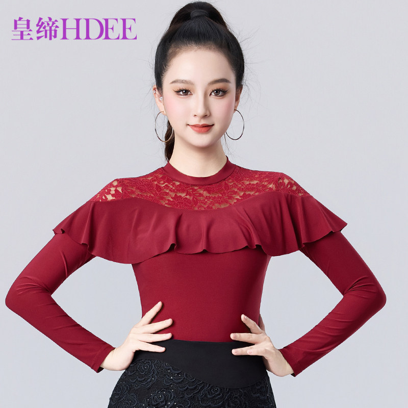 皇缔 拉丁舞新款女成人秋冬练功国标舞跳舞演出上衣吉特巴舞衣