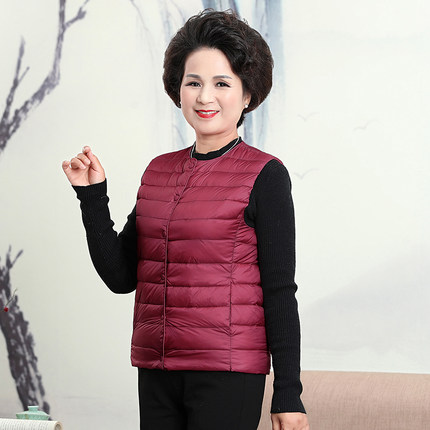 中老年圆领内胆羽绒服女马甲轻薄坎肩胖妈妈装加肥大码保暖背心冬