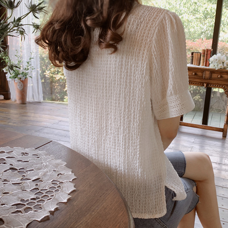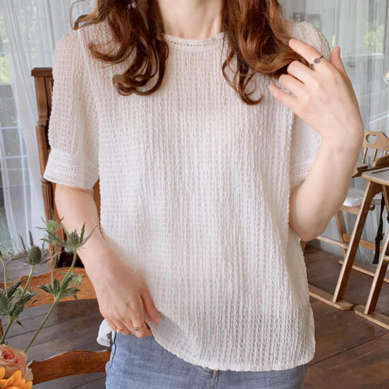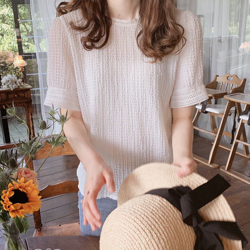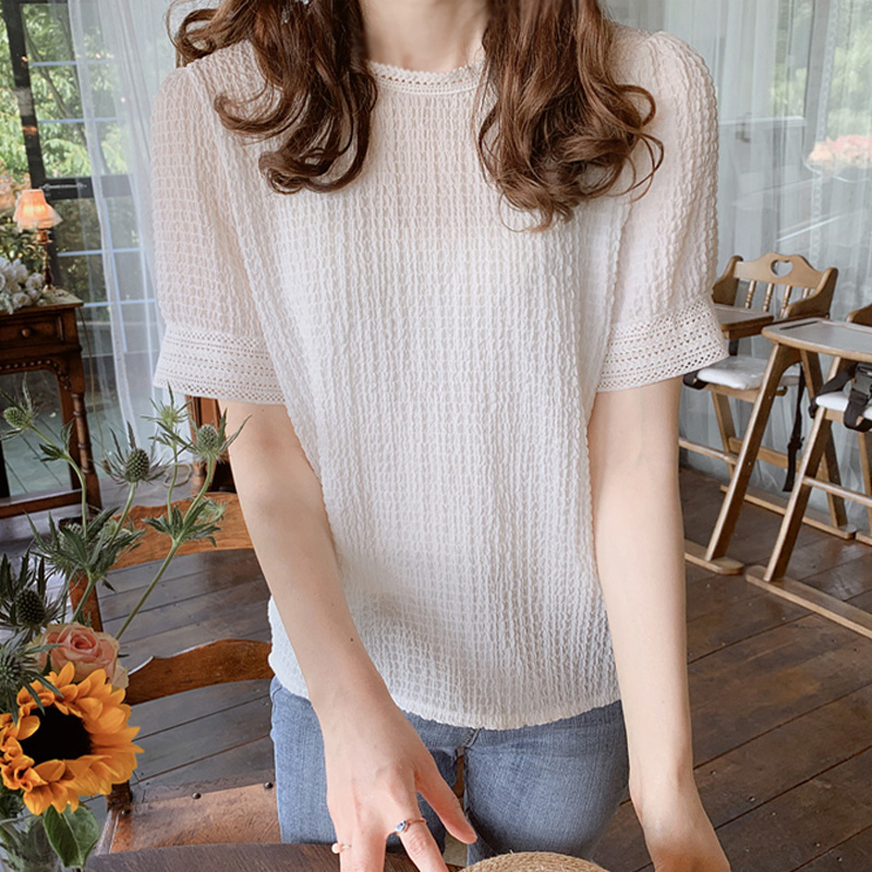白色雪纺衫女夏短袖2022新款设计感小众洋气小衫宽松短款t恤上衣
