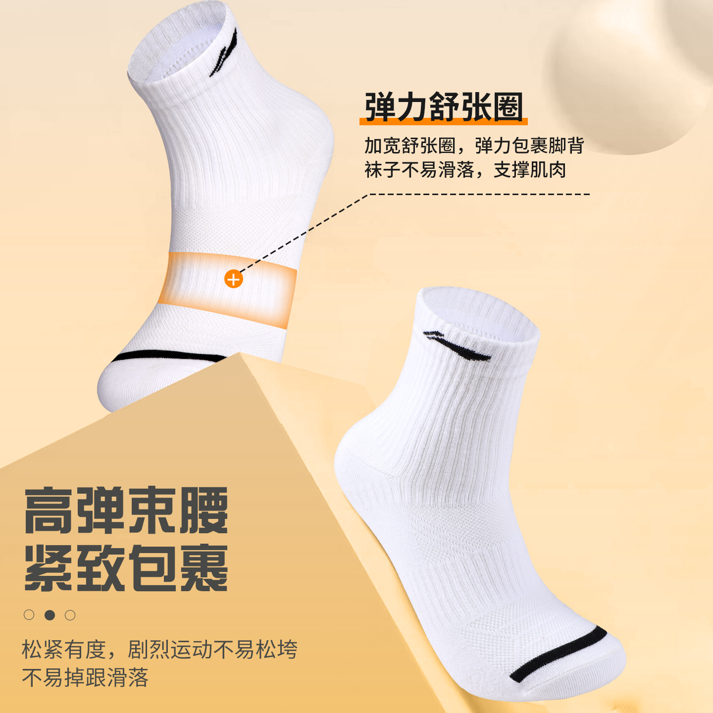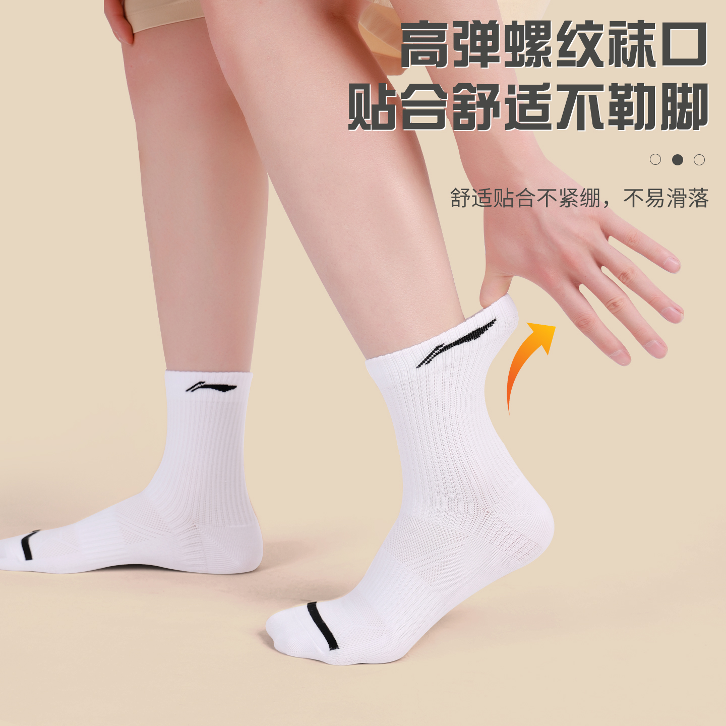 李宁袜子男运动袜青少年女跑步秋冬加厚纯棉抗菌防臭吸汗中筒短袜