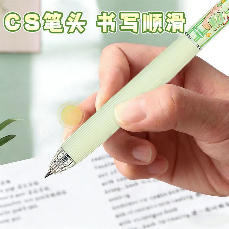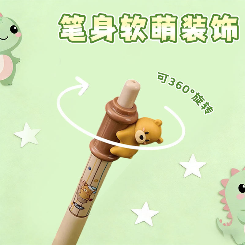 一木林萌宠趣味转转笔高颜值ins卡通可爱解压360度旋转转笔CS头软胶护套签字笔学生考试用速干刷题笔黑笔