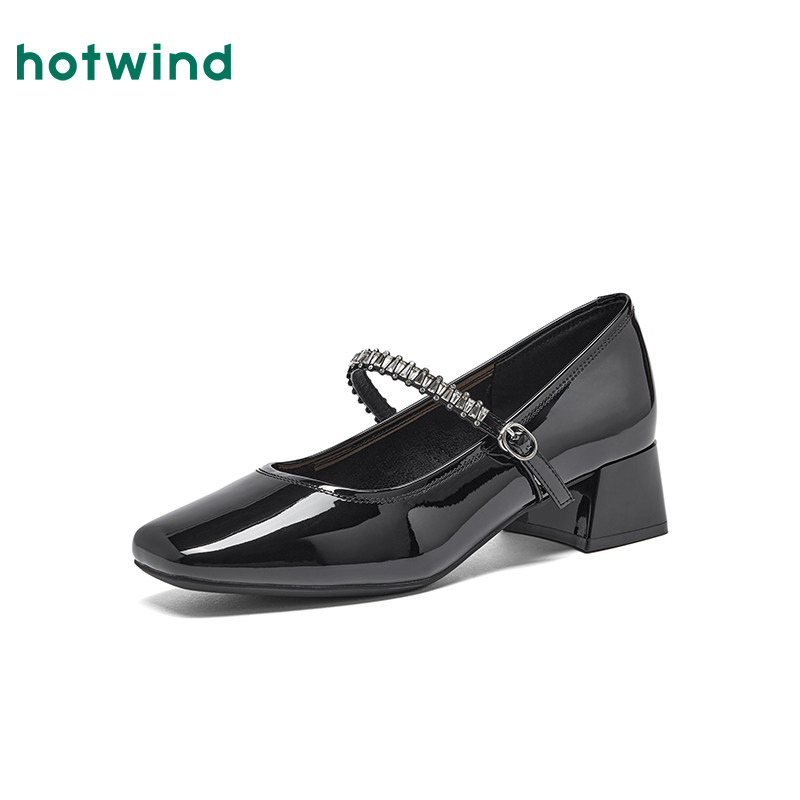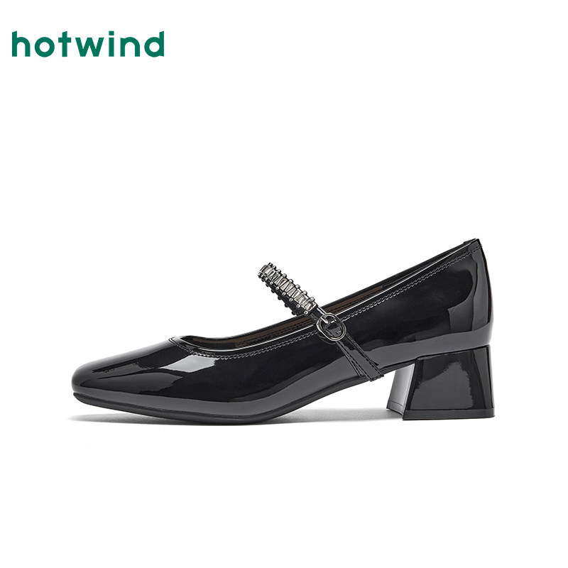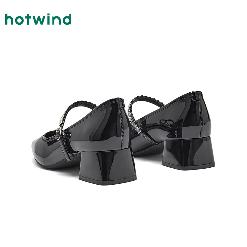 热风法式玛丽珍女鞋2026年春季新款小香风方头粗跟单鞋通勤高跟鞋