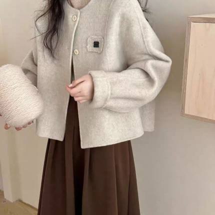 2025新款秋冬韩系高级感宽松显瘦双面羊毛大衣女短款百搭毛呢外套