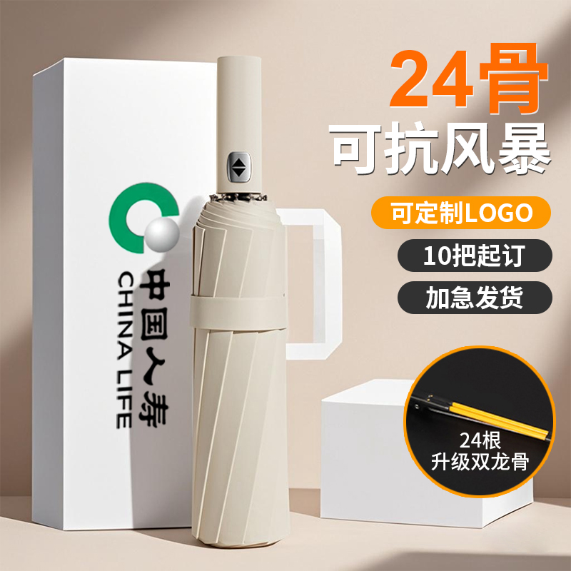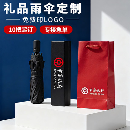 高档高端黑胶商务伴手礼定制logo折叠伞图案男女晴雨两用广告雨伞