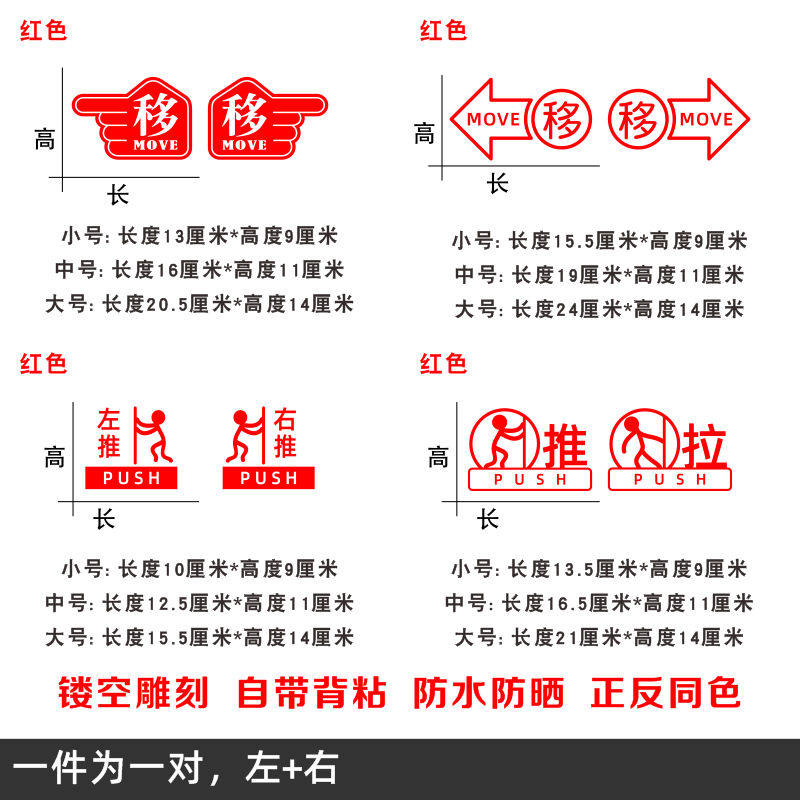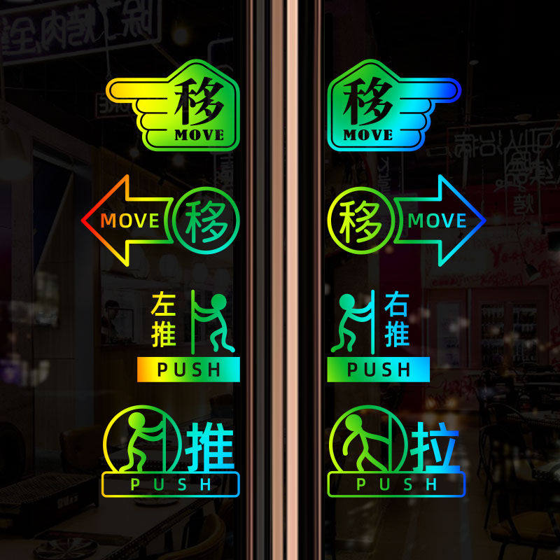 玻璃门贴纸移字门贴滑动门指示贴平移门左右移门推拉贴提示贴标识