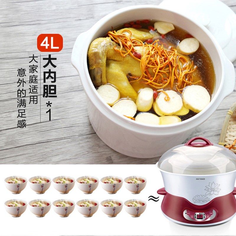 天际电炖炖锅隔水炖电炖盅陶瓷燕窝煮粥煲汤锅家用全自动一锅五胆
