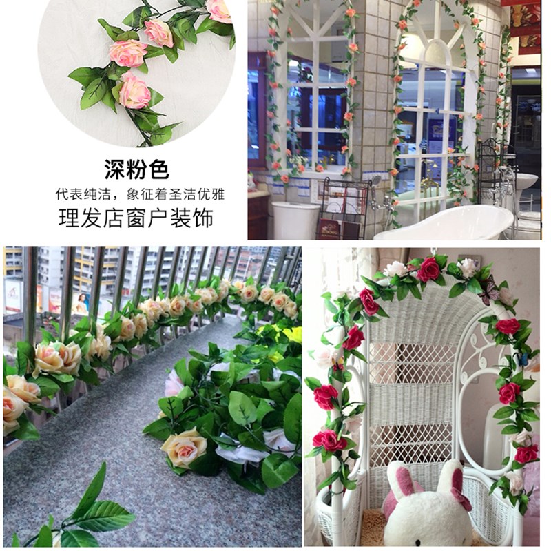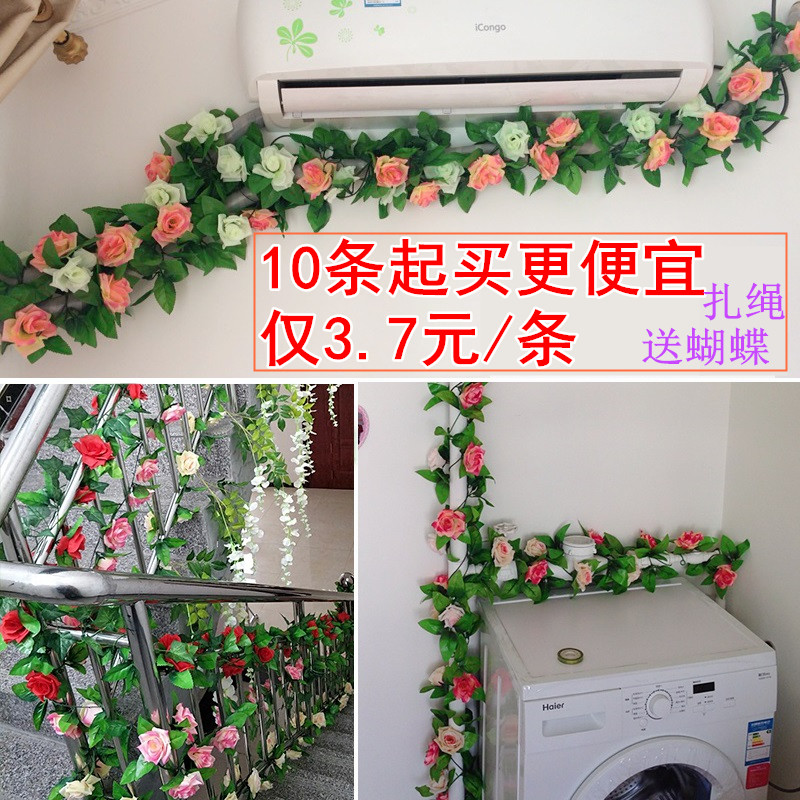 仿真玫瑰假花藤条蔓壁挂缠绕空调水管道遮挡装饰客厅吊顶塑料植物