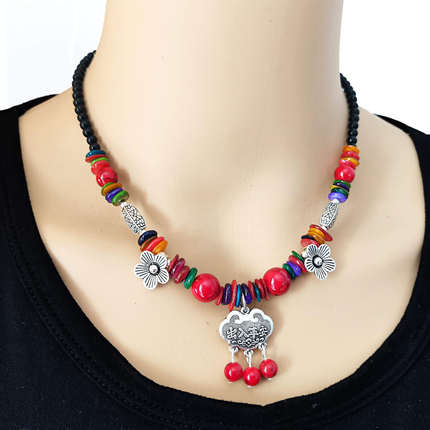 云南民族风饰品花朵项链复古藏银锁骨链平安长命锁吊坠项链XL142