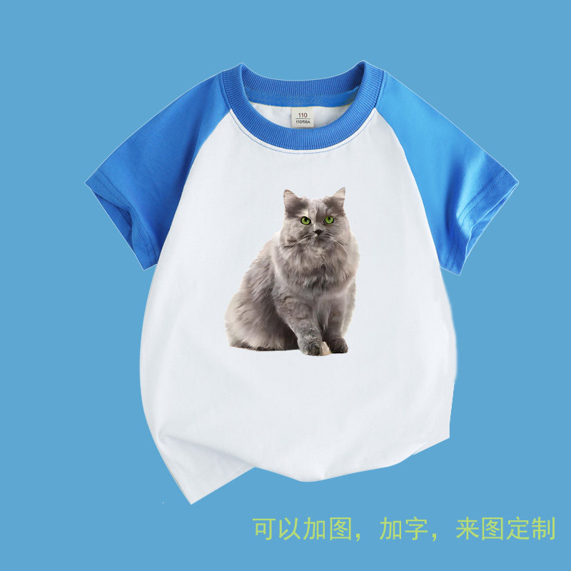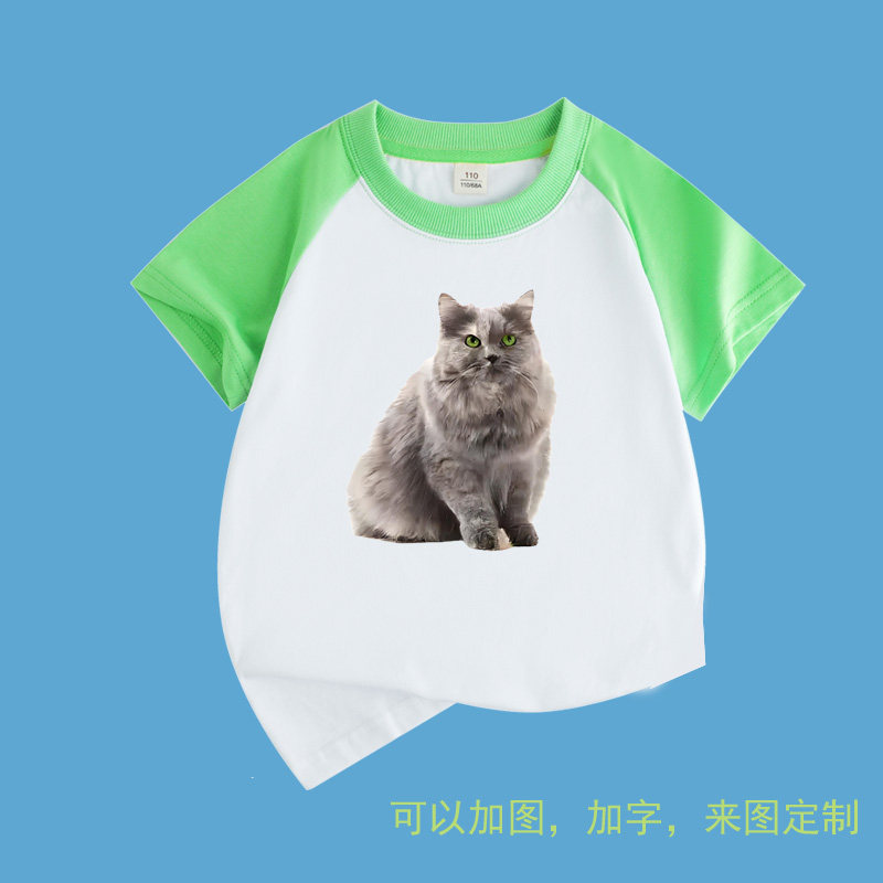 猫咪呆萌可爱猫猫铲屎官动物卡通亲子装短袖T恤衫男女儿童半截袖