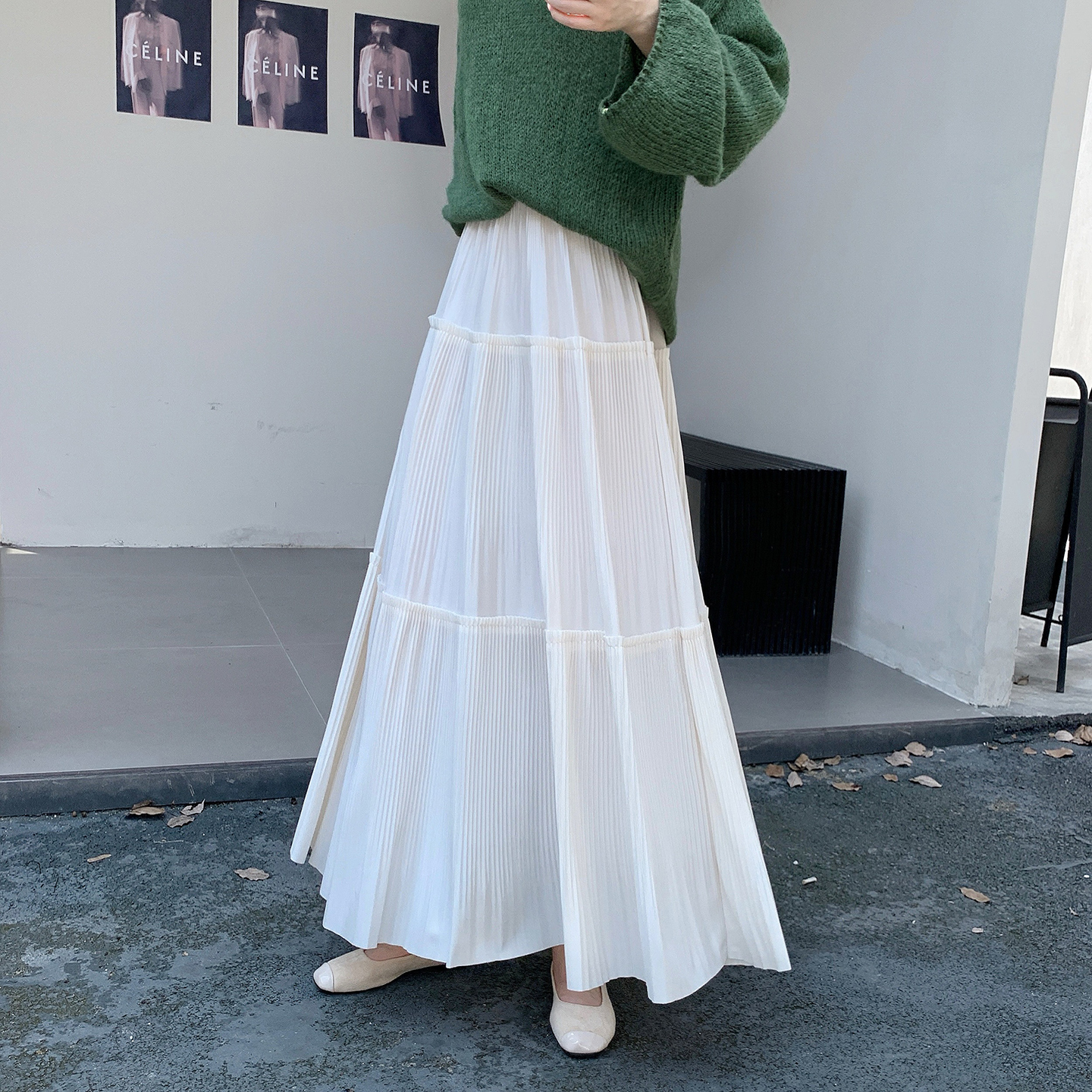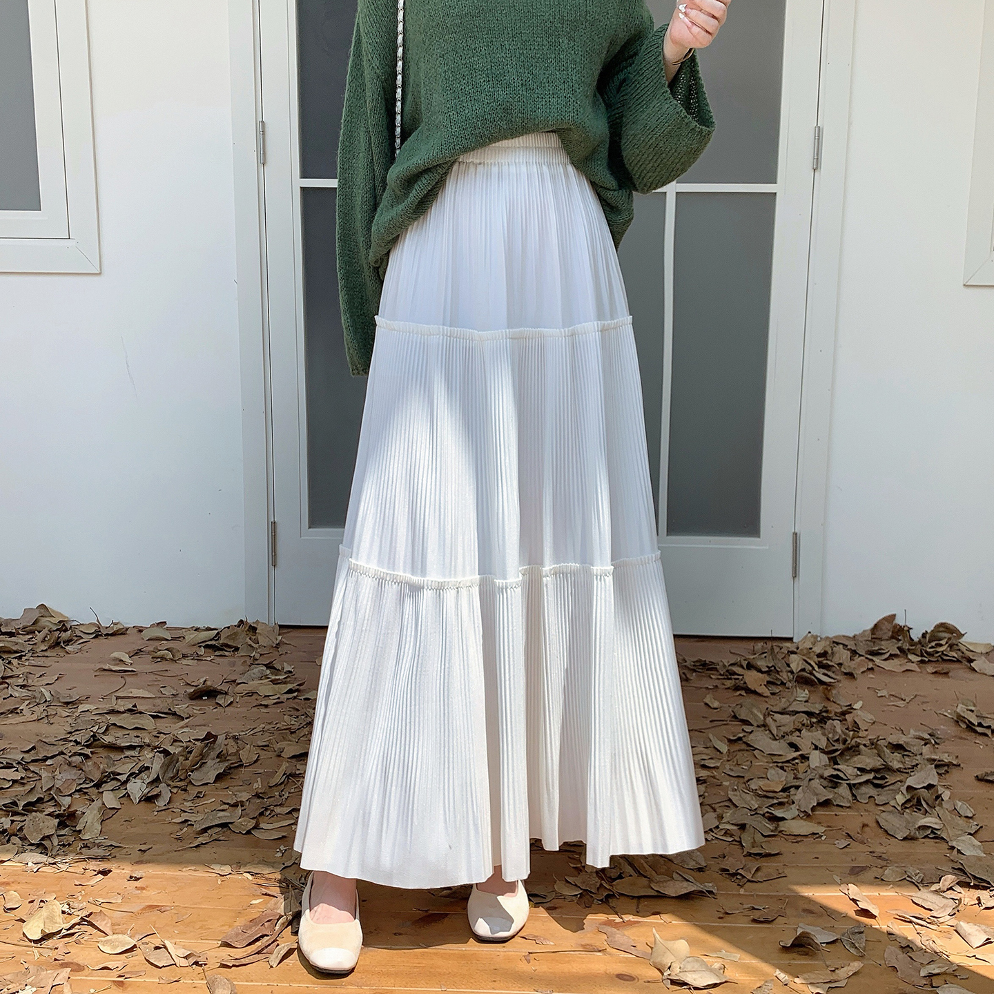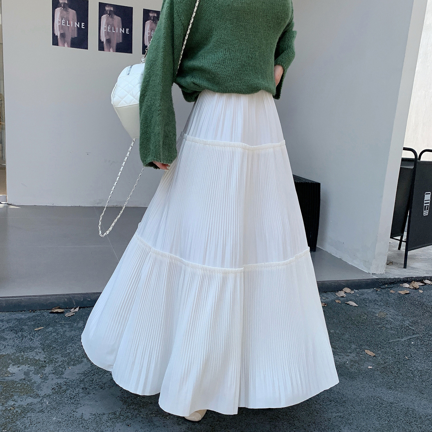 白色压褶半身裙女2025秋冬新款高腰显瘦垂坠感大摆a字伞裙长裙子