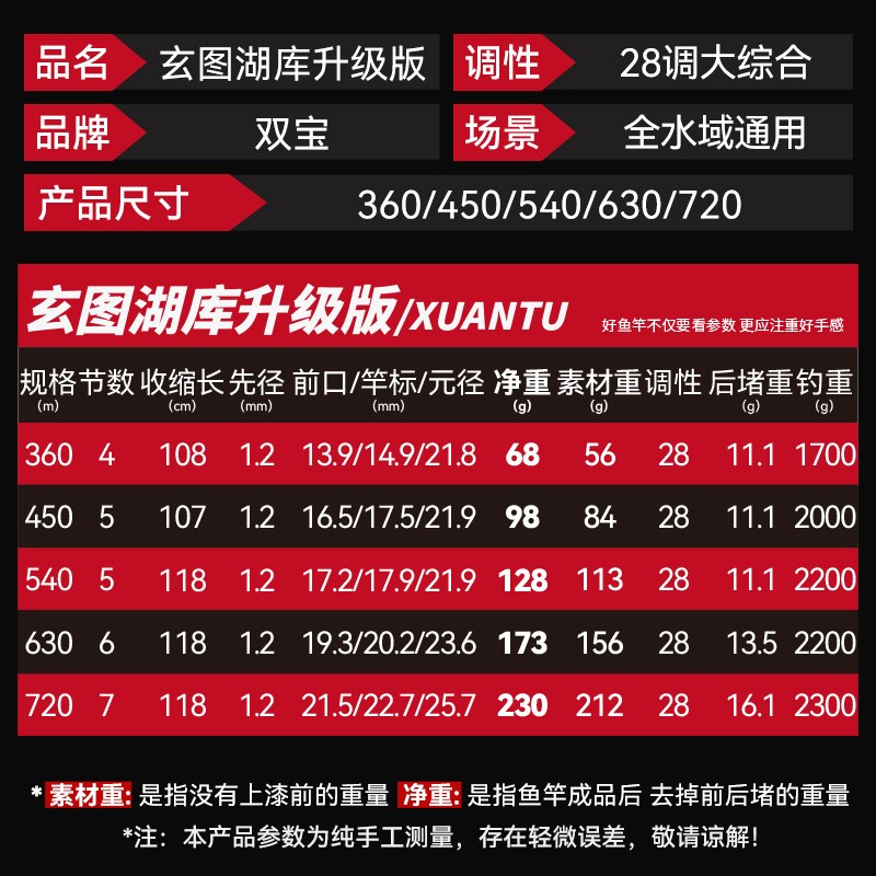 双宝玄图鱼竿手竿超轻超硬钓鱼竿台钓竿渔具28调轻量手杆大物杆