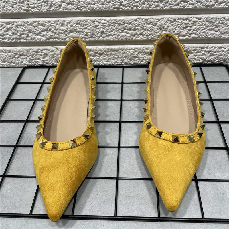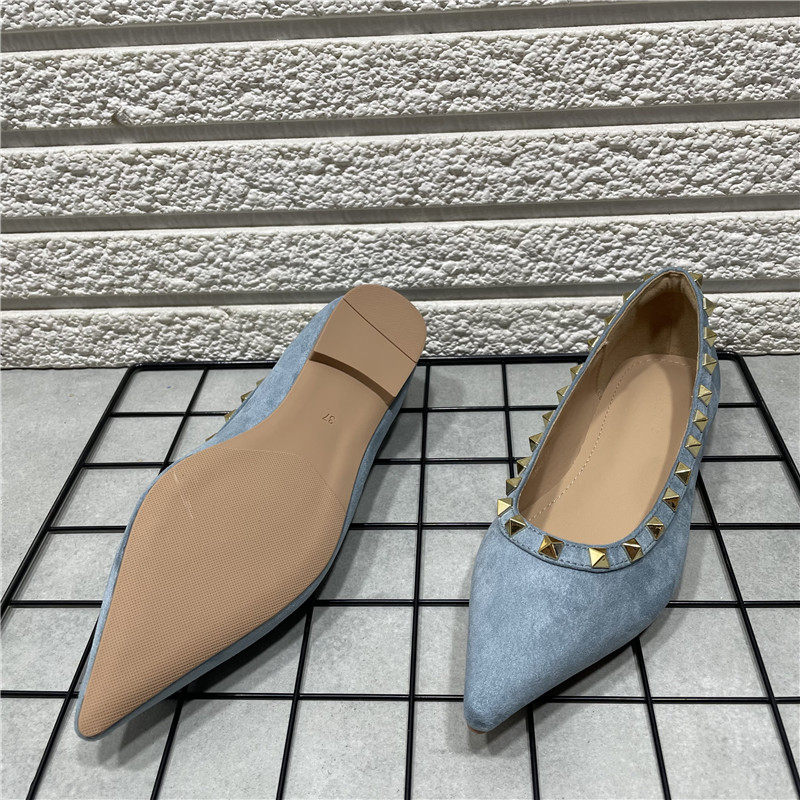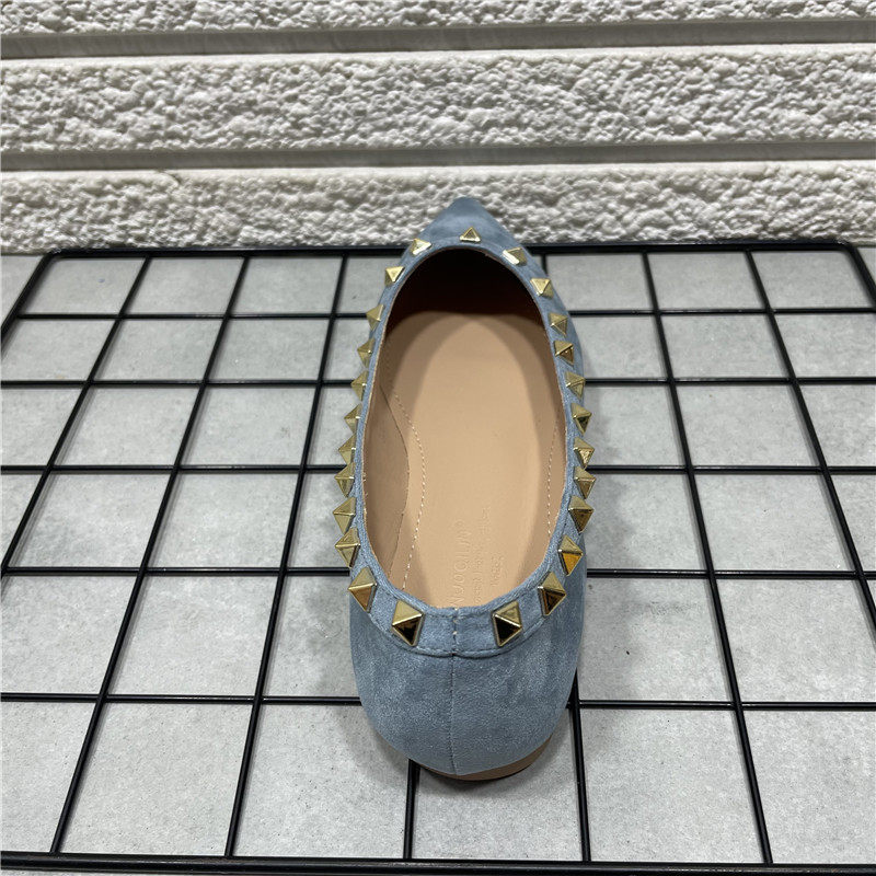 断码处理时尚气质尖头铆钉单鞋女绒面晚晚风平底芭蕾单鞋浅口瓢鞋