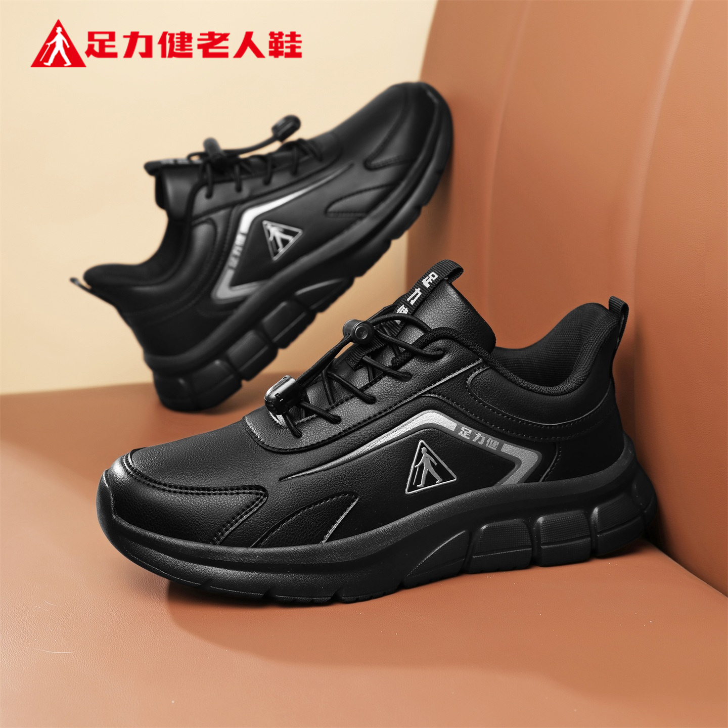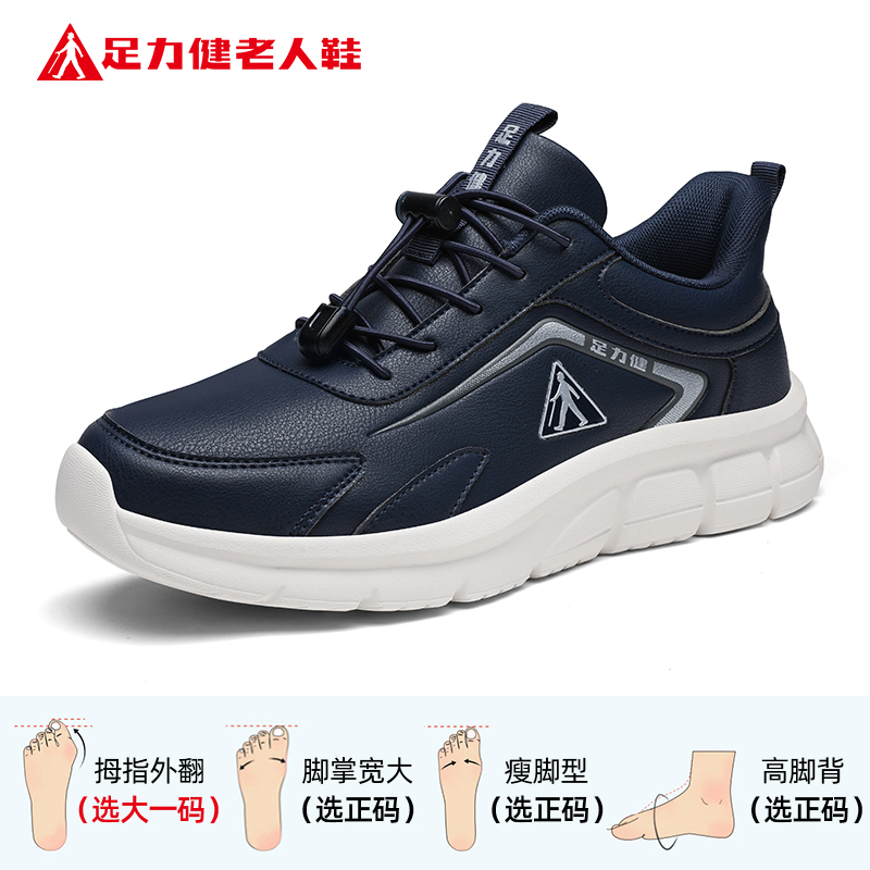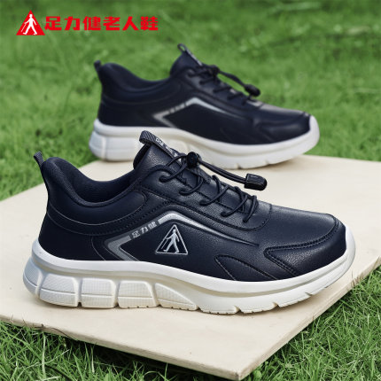 足力健老人鞋旗舰店正品中老年爸爸秋季健步软底皮面舒适休闲男鞋