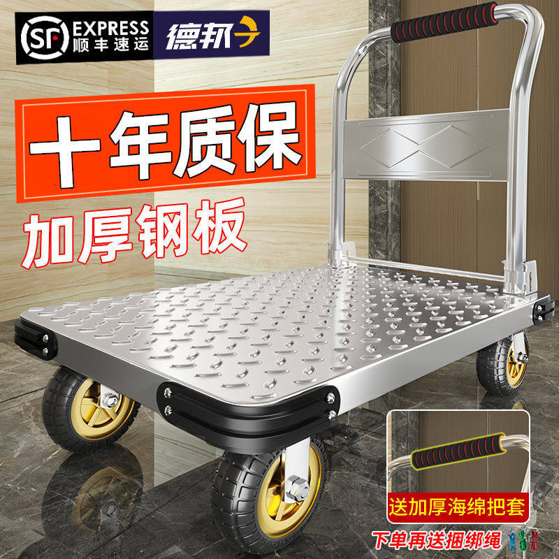 日本钢板小推车拉货手推车搬运车家用平板车便携拖车折叠小拉车手