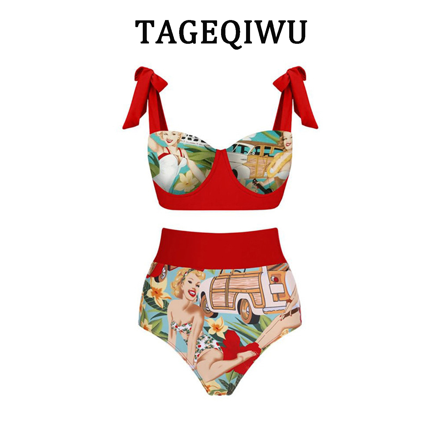 大码分体泳衣女士胖mm高级性感2025新款红色度假保守泡温泉比基尼