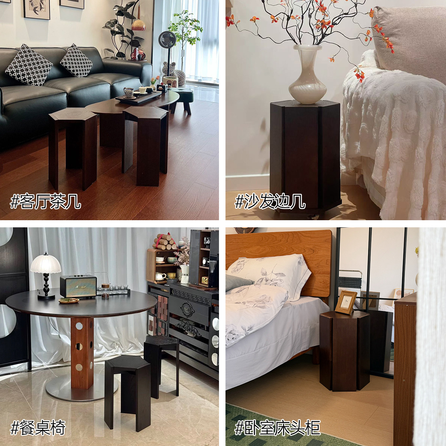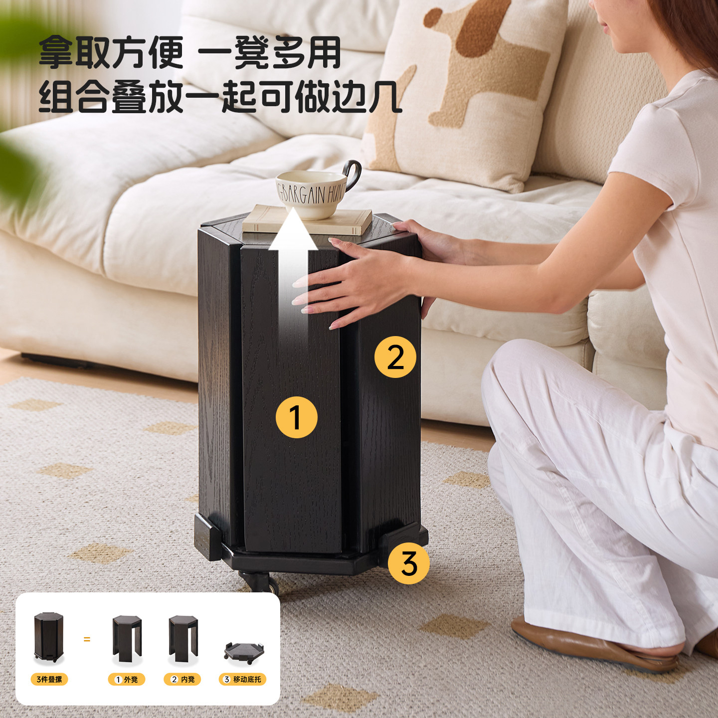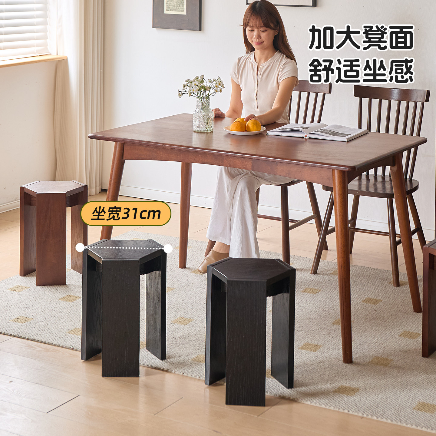 实木凳子家用组合六角凳沙发边几可叠放客厅餐桌凳北欧简约矮凳子