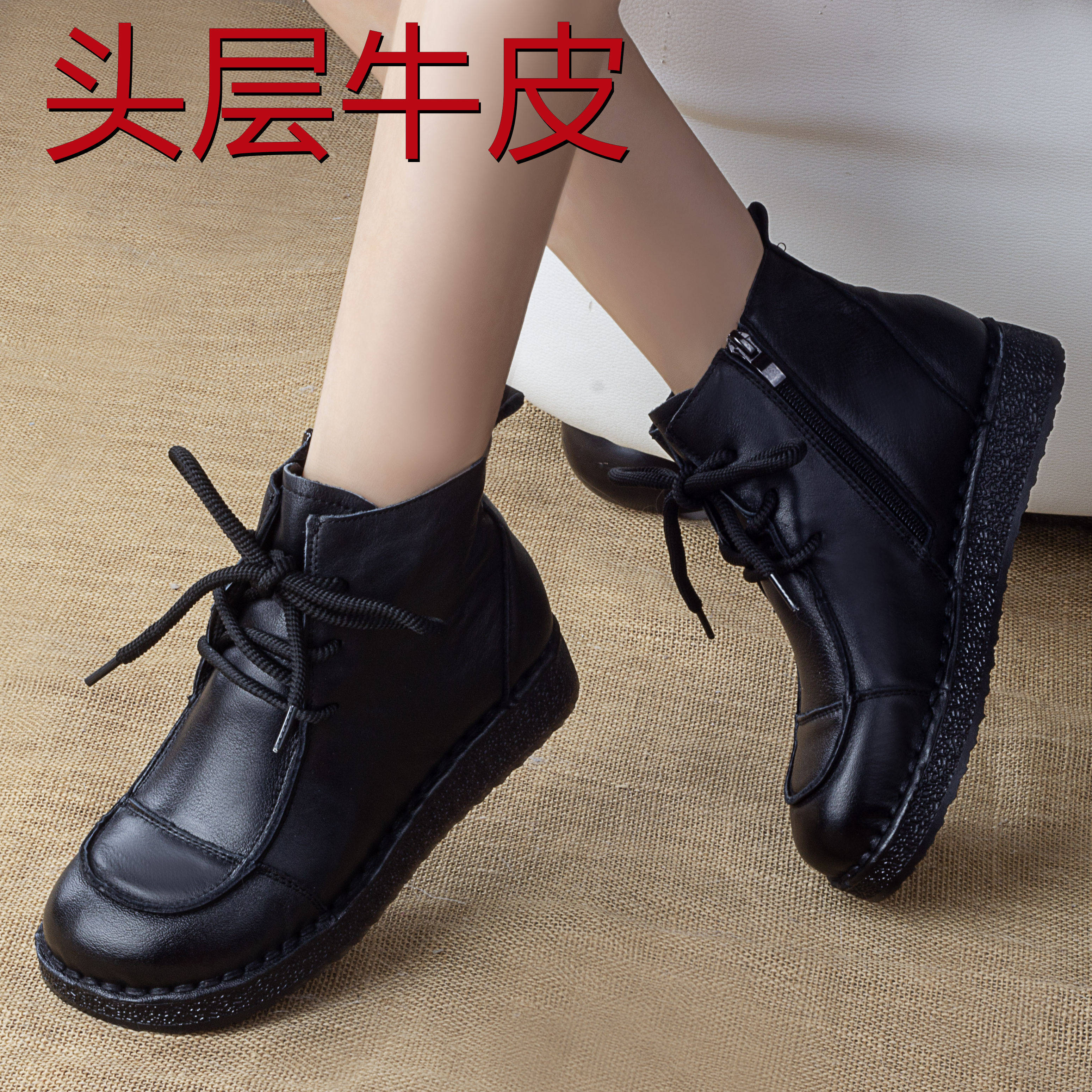 英伦风手工圆头真皮软底马丁靴子