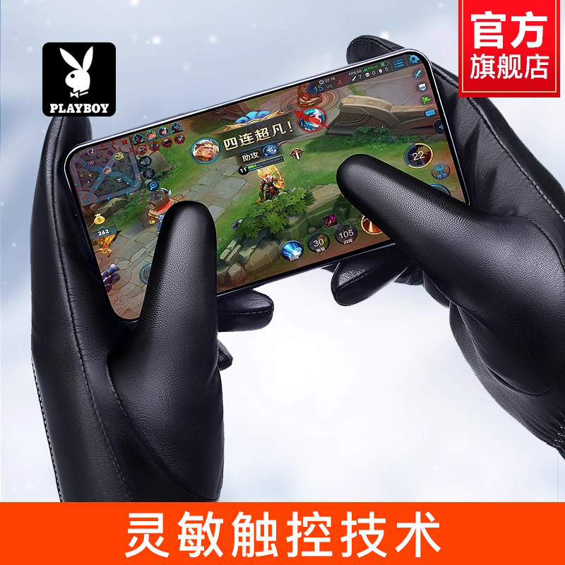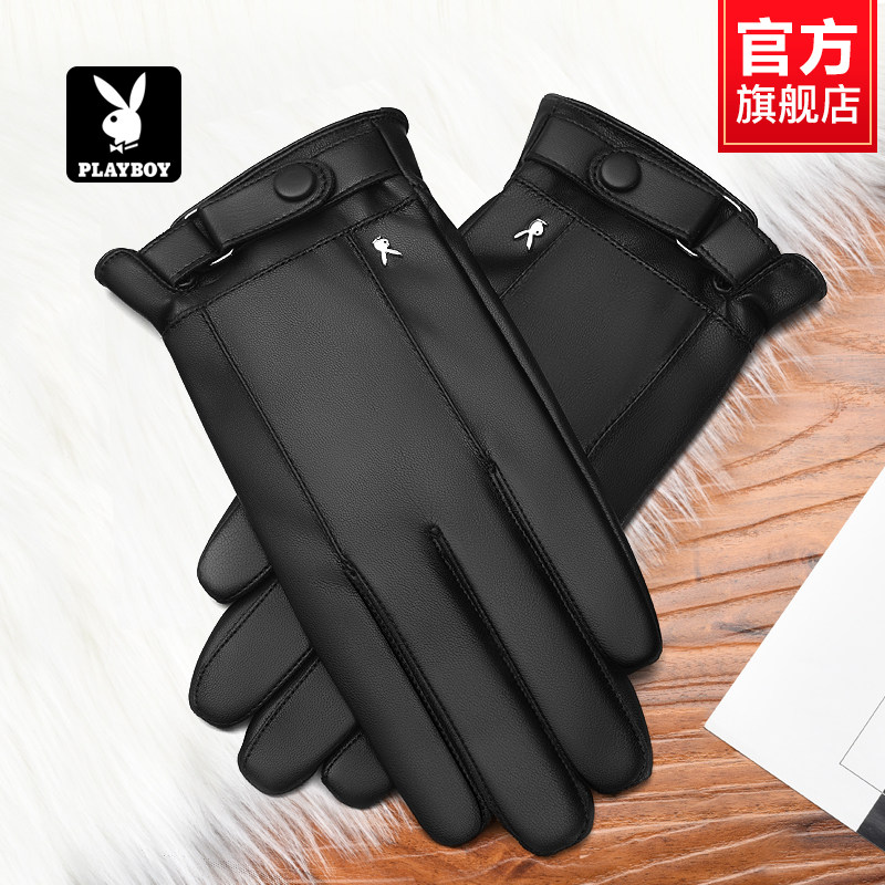 花花公子羊皮手套男士冬季加厚保暖防寒防水骑行骑车真皮男款手套