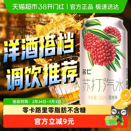 名仁苏打水整箱汽水荔枝苏打气泡水无糖饮料气泡水0糖0脂0卡