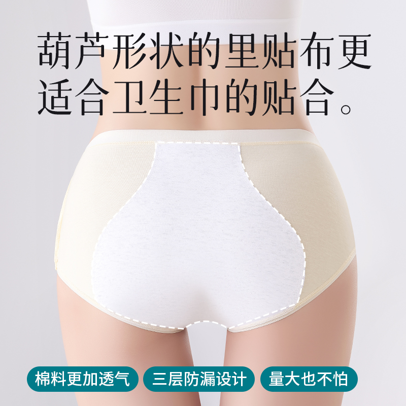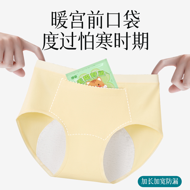 猫人生理内裤女士纯棉高腰月经期姨妈防漏便携口袋安全卫生裤透气