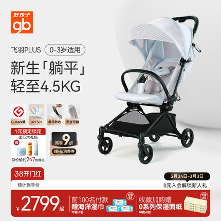 gb好孩子飞羽PLUS碳纤维婴儿推车轻便可折叠宝宝遛娃神器可坐可躺