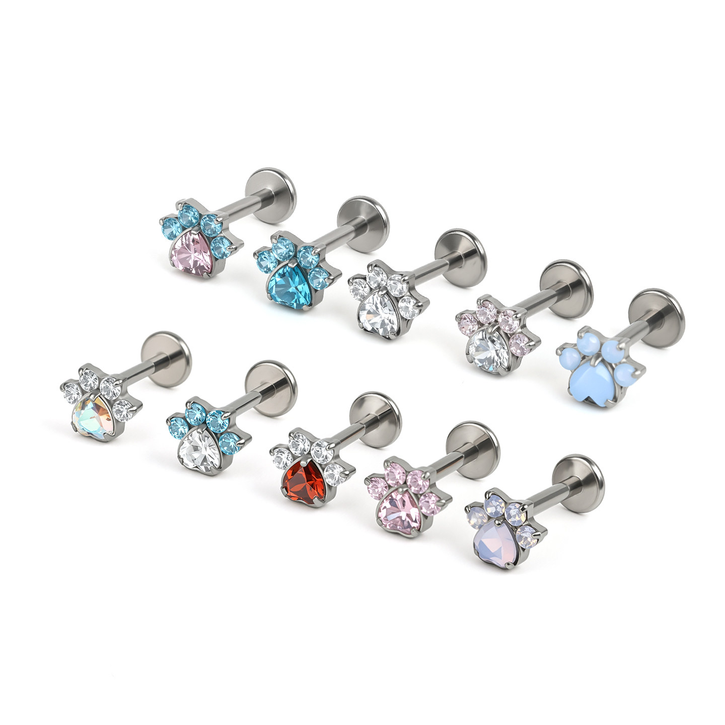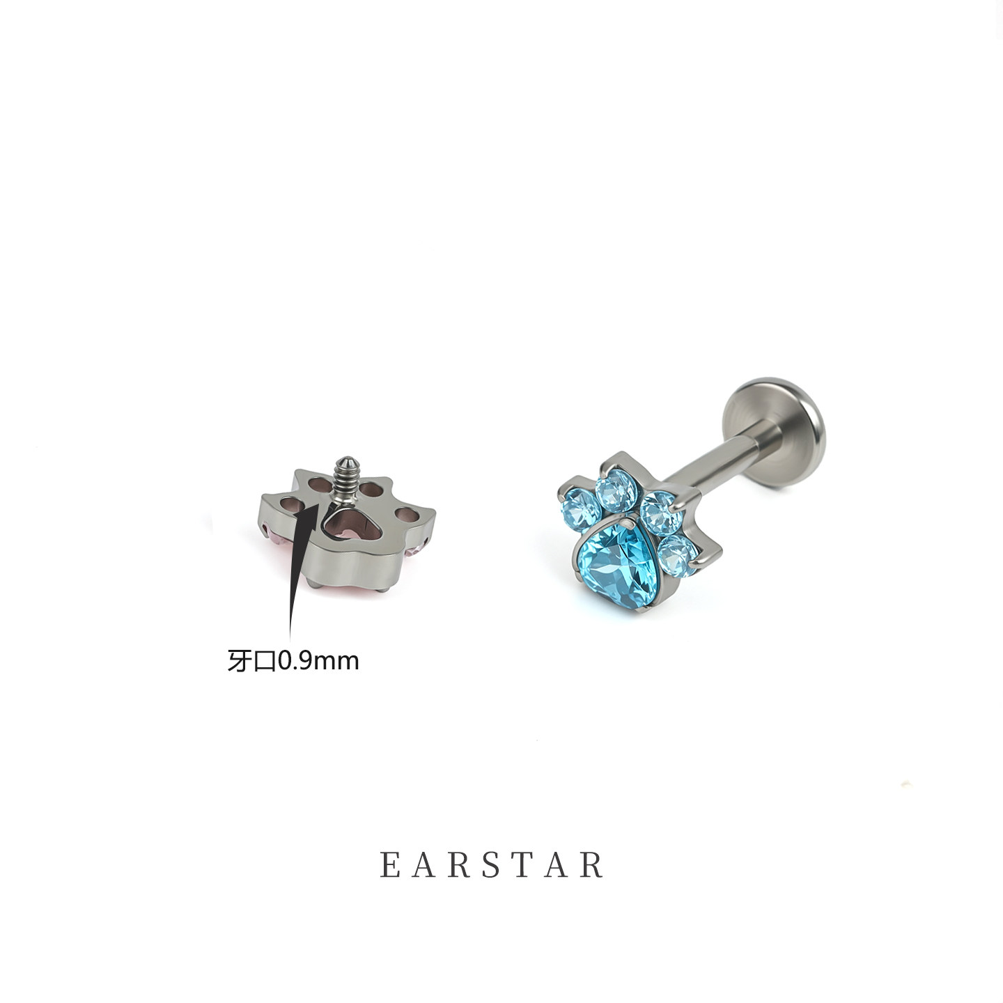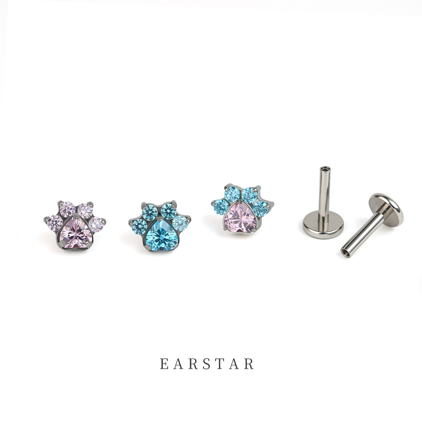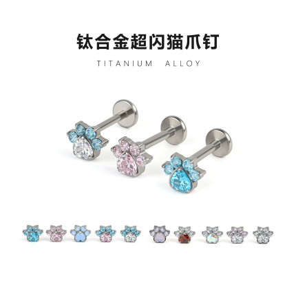 F136钛合金甜美可爱猫咪爱心猫爪锆石耳钉防过敏养耳洞超闪耳骨钉