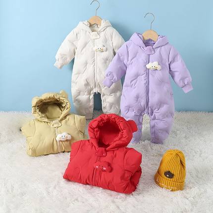婴儿羽绒服宝宝保暖连体衣男童衣服女童冬季抱衣2025新款白鸭绒潮
