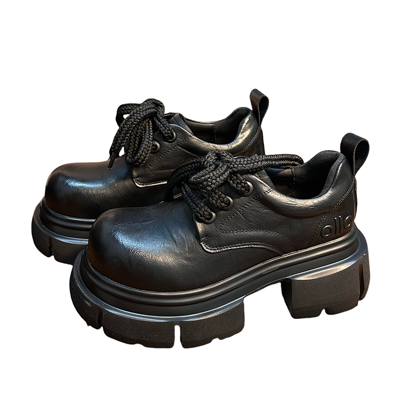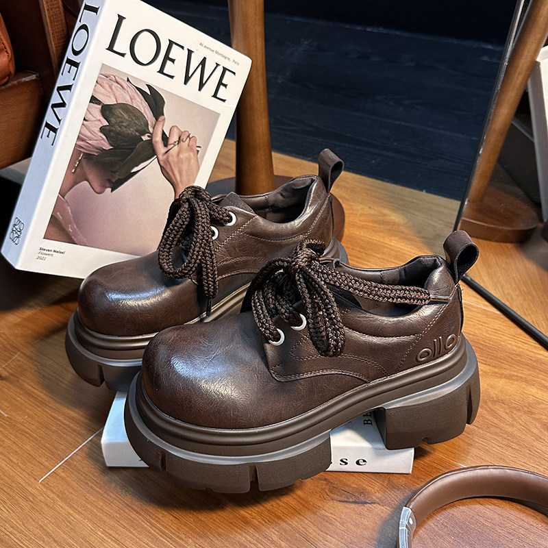 欧货真皮厚底小皮鞋女英伦风圆头系带德比鞋小个子增高乐福鞋单鞋
