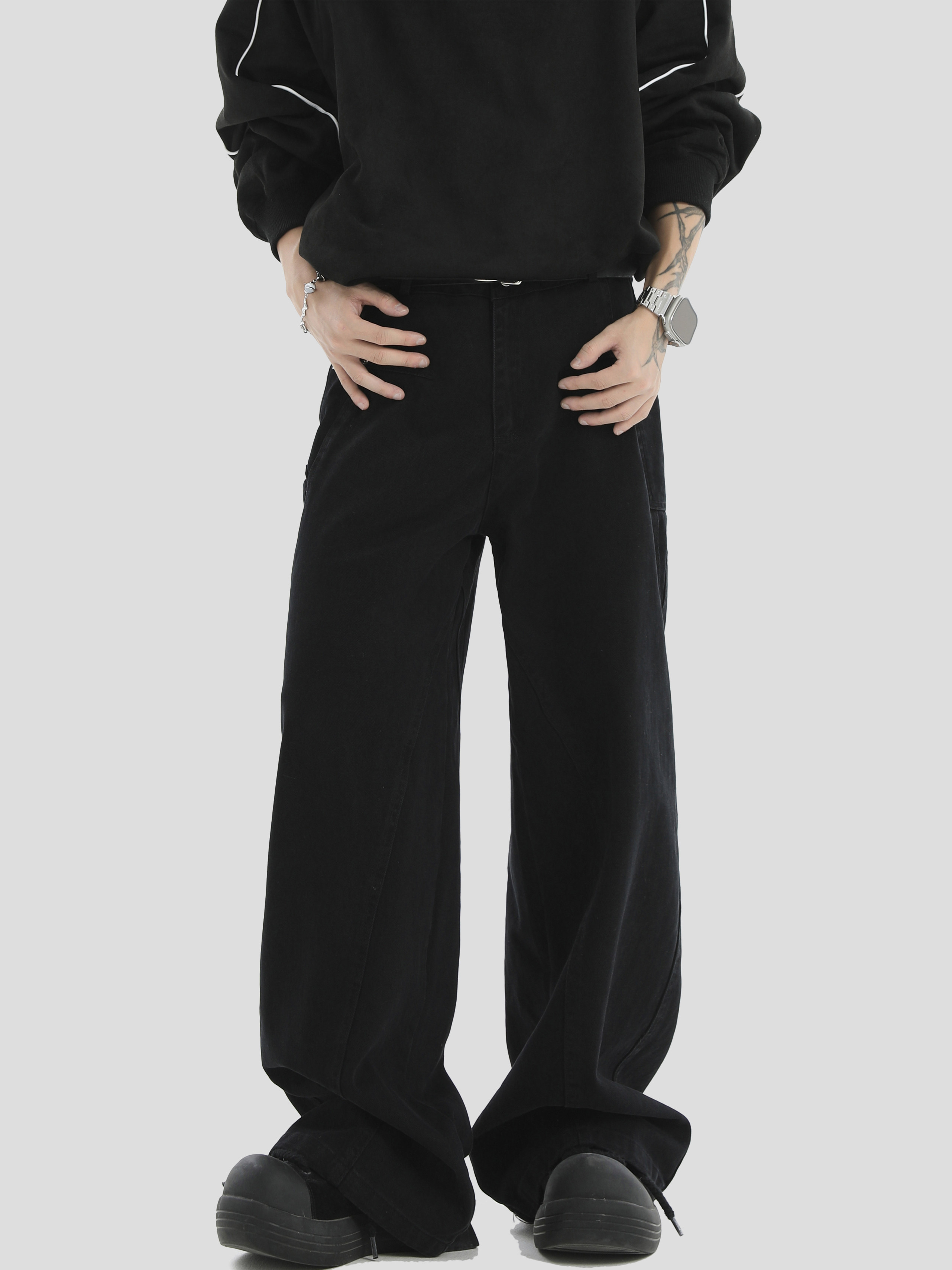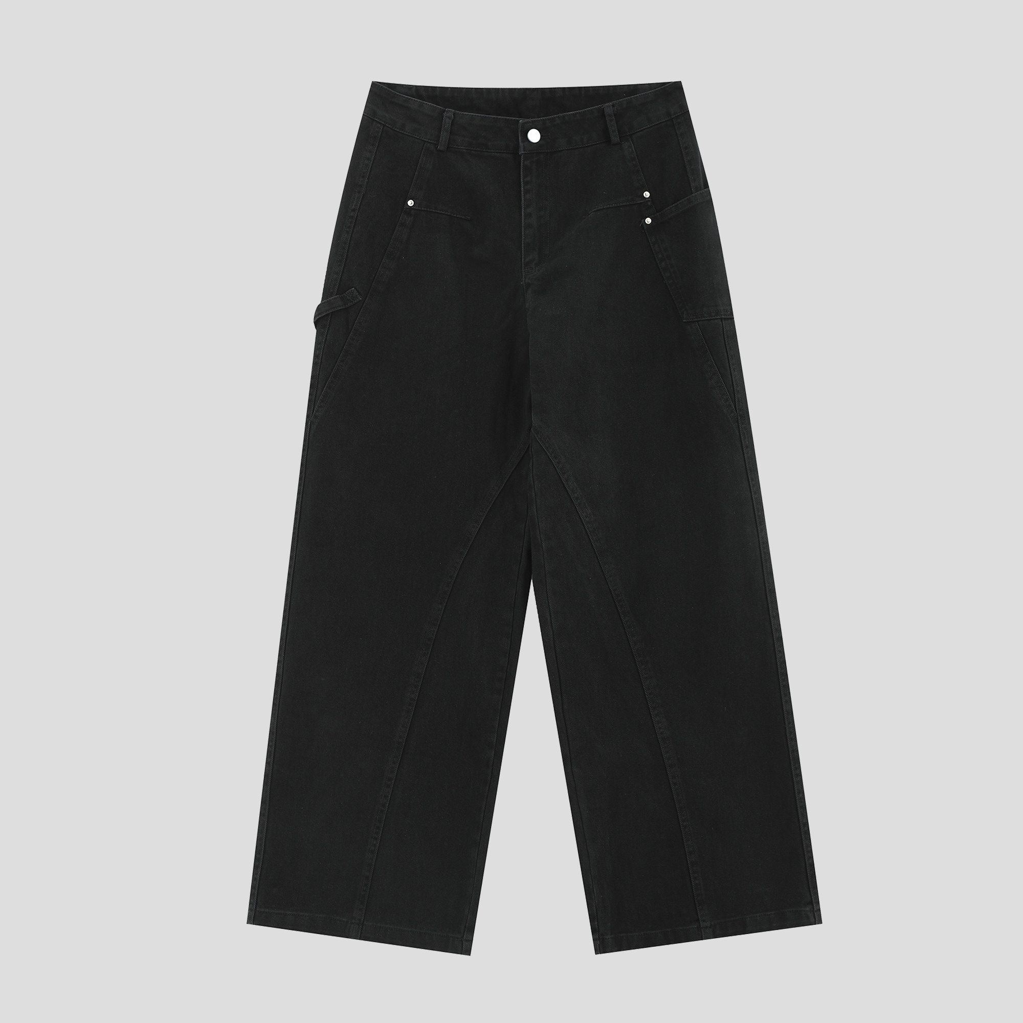 INSstudios 国潮牌情侣美式复古水洗黑色工装裤宽松休闲长裤子男