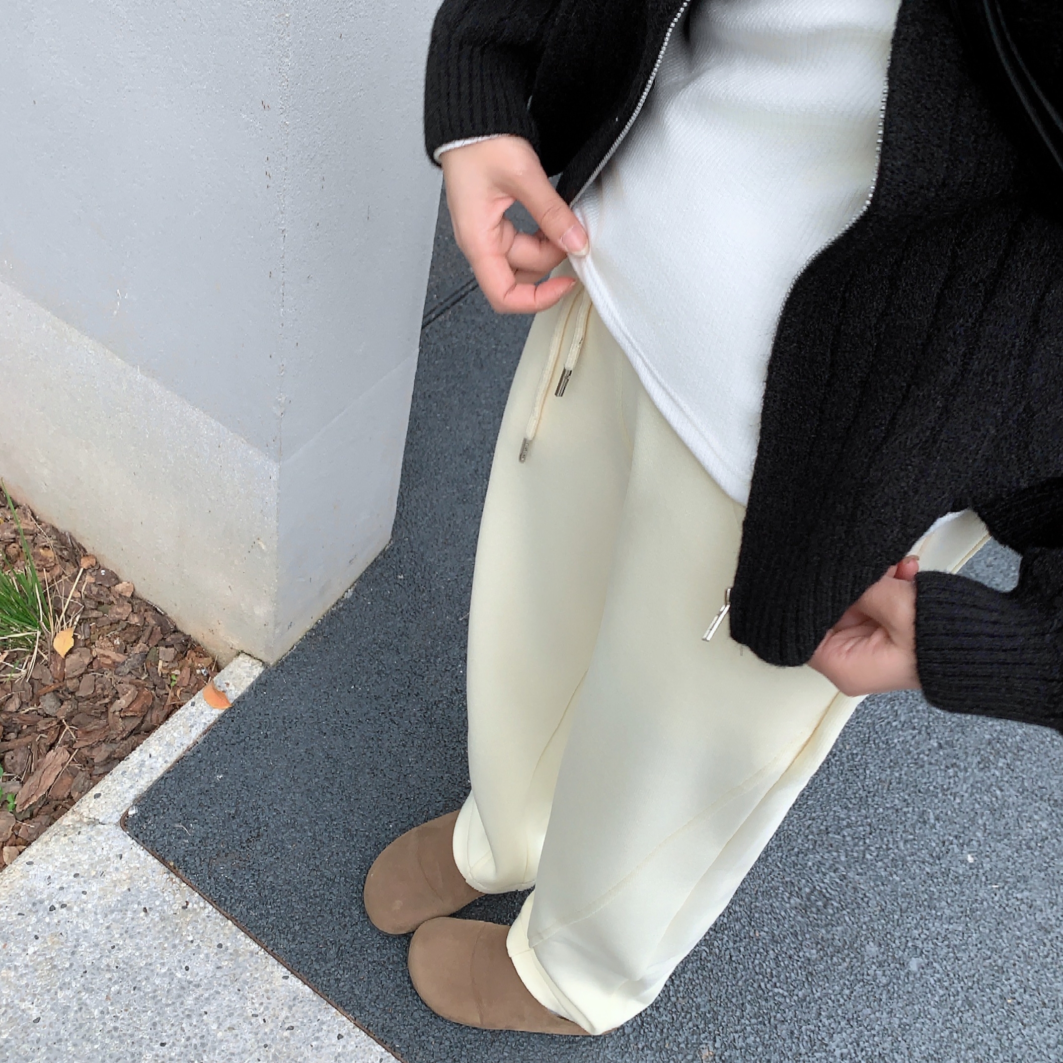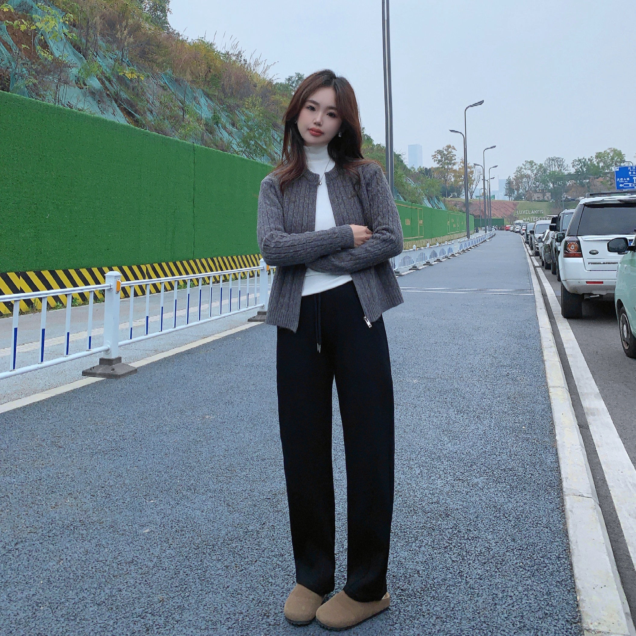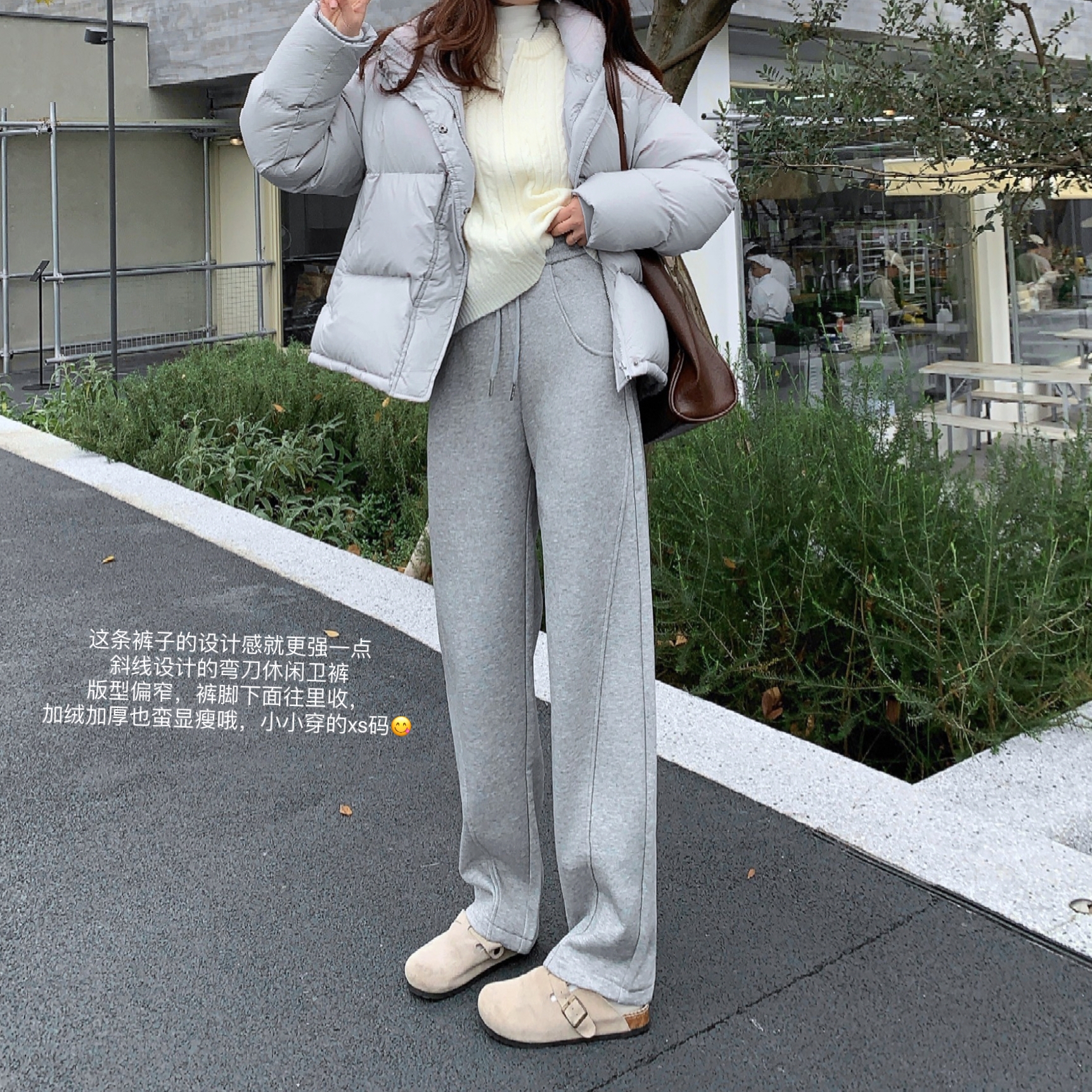 小小家 小个子小码加绒加厚设计感阔腿休闲裤冬新款保暖直筒长裤